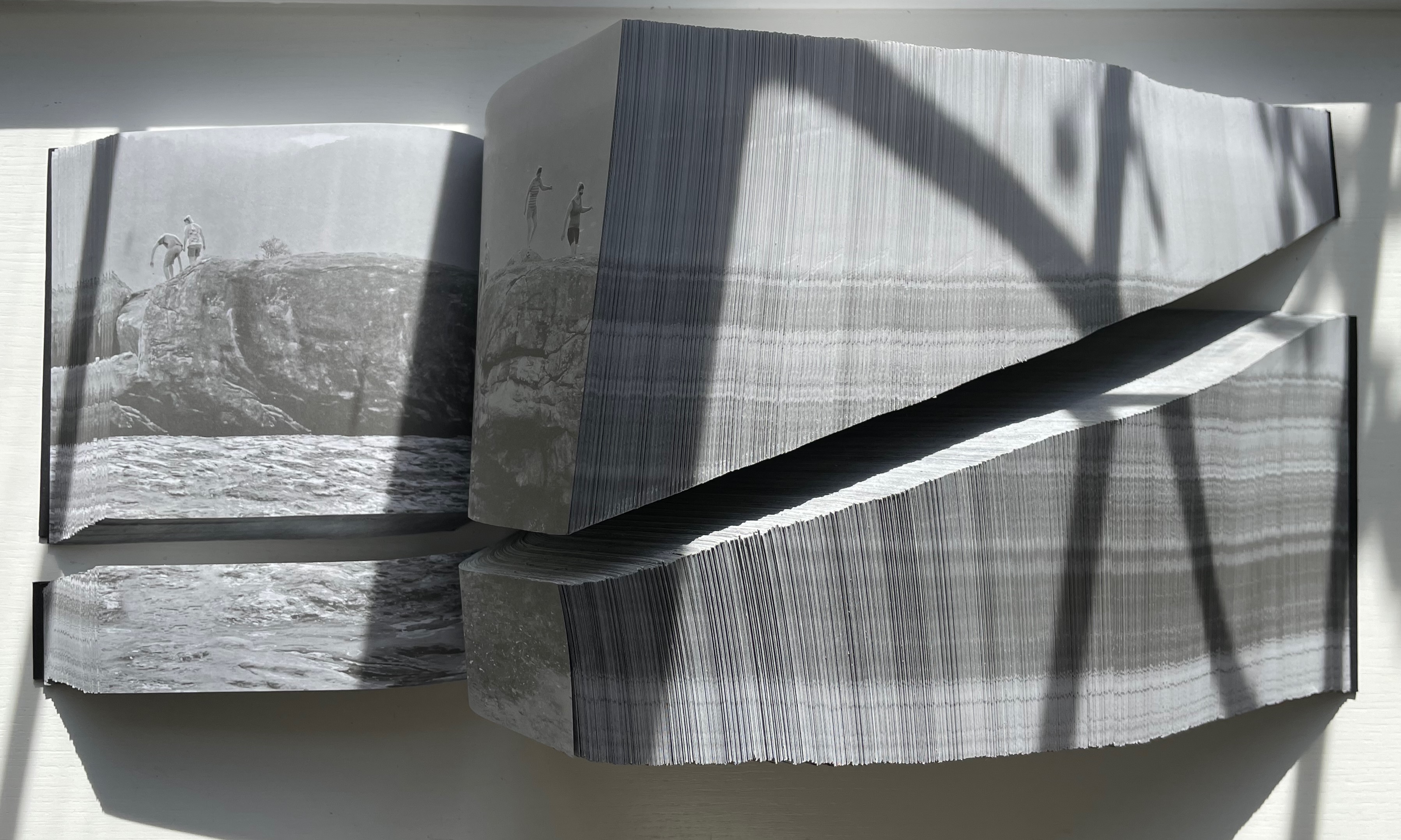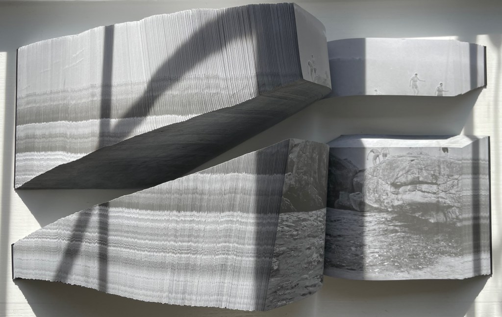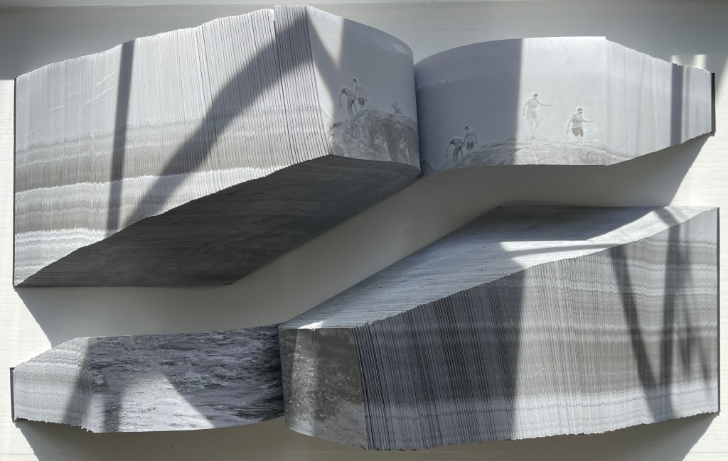Marlene MacCallum often applies unusual folds in her works. They appear in sleep walk (2024) and The Shadow Quartet (2018-25). With the two works below, however, — as with Chicago Octet (2014) — the fold becomes central to the whole work. Any other structural presentation would not deliver the precise fusion of image, text, and material to deliver the metaphor embodied by the work.