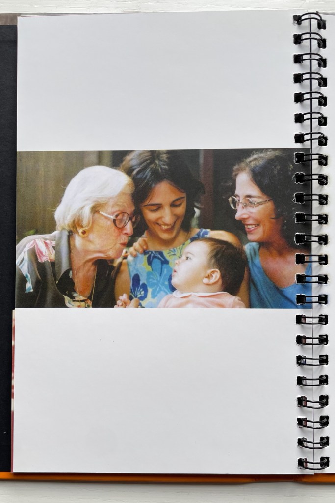 Loeb’s “Memories of You” maintains the form’s comic nature but blends it with the forms of the photobook and family photograph album to deliver a whimsical and sentimental celebration of four generations. Loeb plays her title’s deliberate ambiguity out with the form’s interchange of resemblances in faces, poses and costumes and lifts her work out of mere sentimentality. The video below provides a better view of the work than would photos of the book.