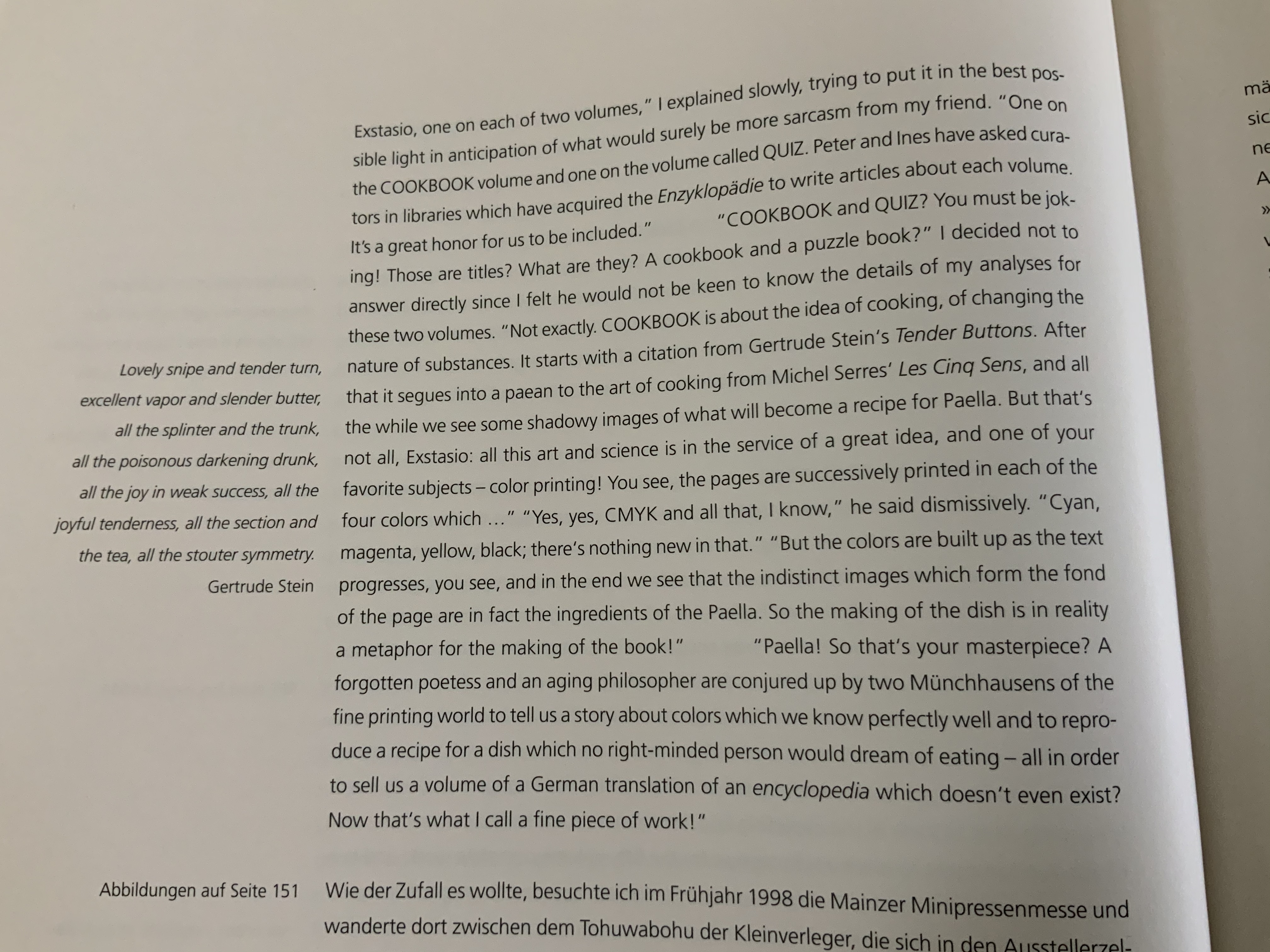 Another is a gamble: a roll of the dice that the twenty-three contributors would deliver comments on each volume that rise to the occasion. It was a winning gamble, but there is one superlative pair of essays that rings like a tuning fork: COOKBOOK and QUIZ as explained by librarian James Henry Spohrer (University of California, Berkeley). They are at once Borgesian, Malutzkian and Von Ketelhodt-esque.