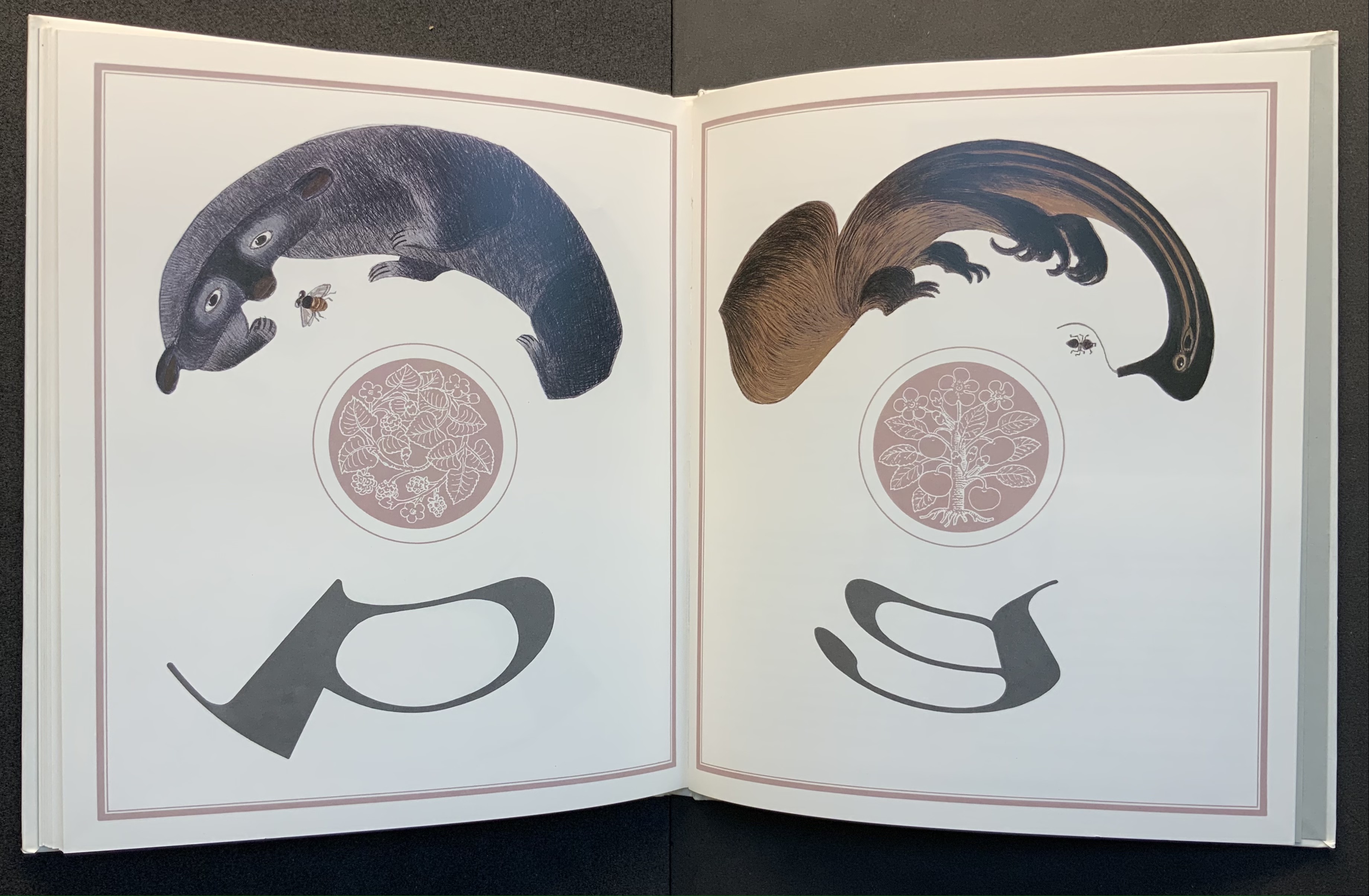 A former mathematics teacher, Mitsumasa Anno conceived several children’s books that brought his delight in puzzles and complexity to life. In 1984, he received the Hans Christian Andersen Medal in 1984 for his “lasting contribution to children’s literature.” This one was chosen for the Books On Books Collection not only for its contribution to the theme of alphabet-related works but also for its design, color, execution and science.