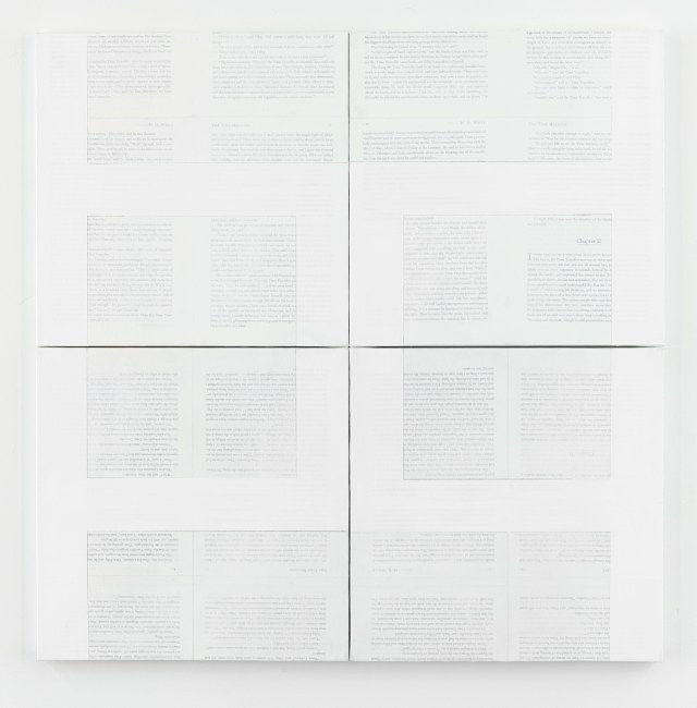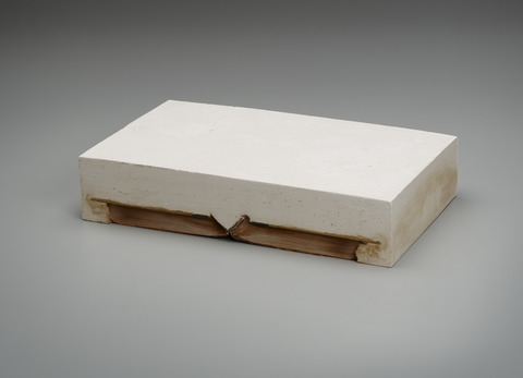 Spector, Buzz. Altered Lewitt (1985). Multiple: One of five. Found printed book [Sol Lewitt. (untitled. n.p.:) Sperone/Fisher, 1974. Edition: one of fifteen hundred.] altered by tearing and mounting text block in open position. Signed. 17 11/16” x 8 7/8” x 7/8”.