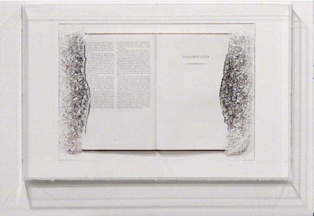 No online image seems available, and the one in the catalogue is black and white. Framed on the back wall of the page, it hangs there like a religious diptych. This work became the second in the M.A.D. trilogy (matches, ashes, dust), and full-color images of Ashes and the trilogy have been provided here by the artist. These can also be seen in full color and context in Beube’s Breaking the Codex (New York: Etc. Etc. The Iconoclastic Press, 2011), p. 186.