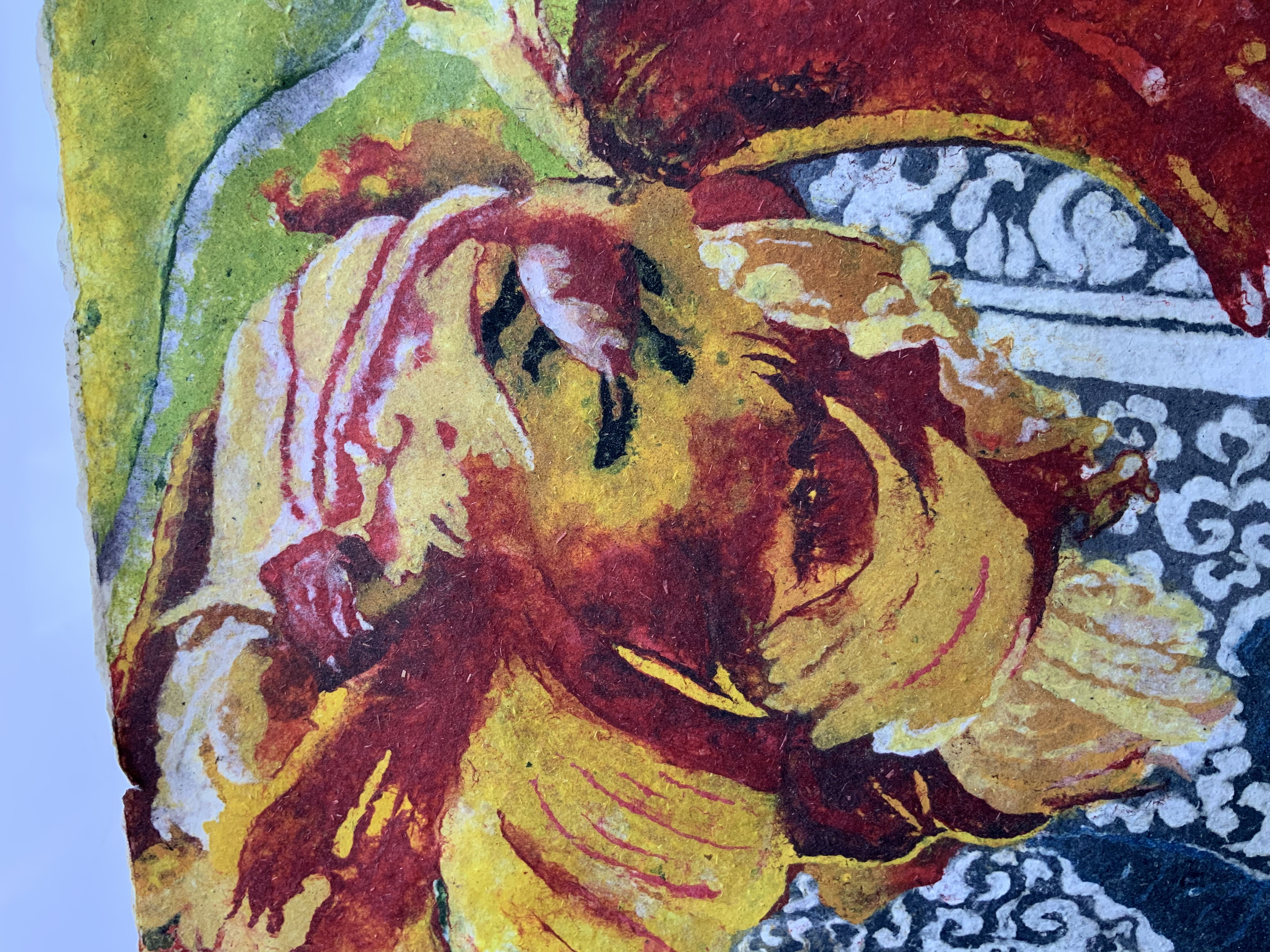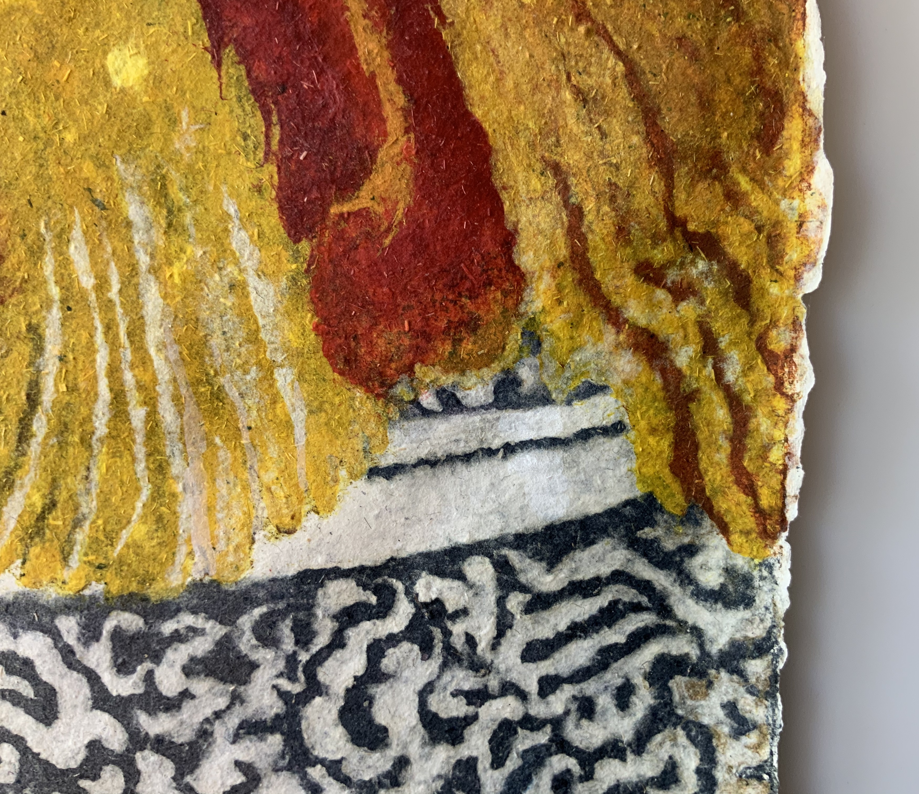 Working on pulp painting from the front to the back Photo credit: courtesy of Pat Gentenaar-Torley