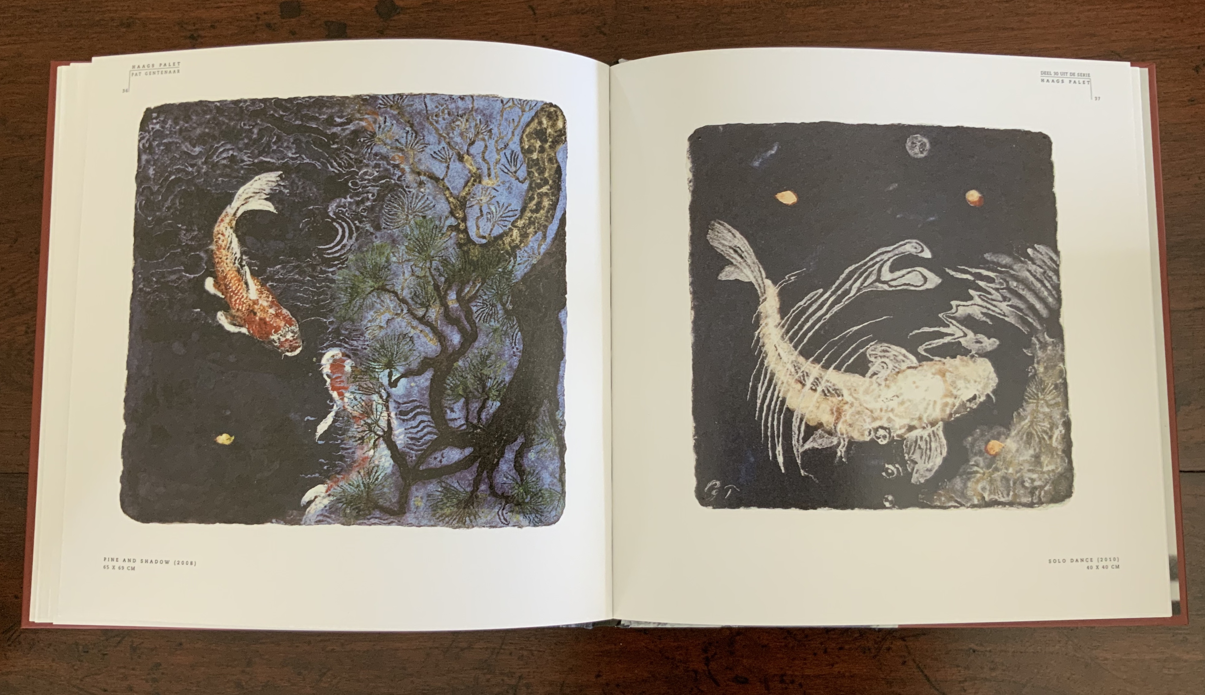Book 4 picks up the theme of process, highlighted by so many of the artists’ statements, and devotes three pictorial essays to it: Rogier Uitenbogaart on making “real” Japanese paper (washi); Helen Hiebert on Peter Gentenaar’s papermaking innovation and its symbiosis with his dramatic paper sculptures; and Pat Gentenaar-Torley on the intricate steps of preparation and painting with paper pulp. If, after Book 4 the reader has any doubt that Pure Paper is undeniably the right title for the seventh Biënnale publication, Books 5-9 sweep it away.