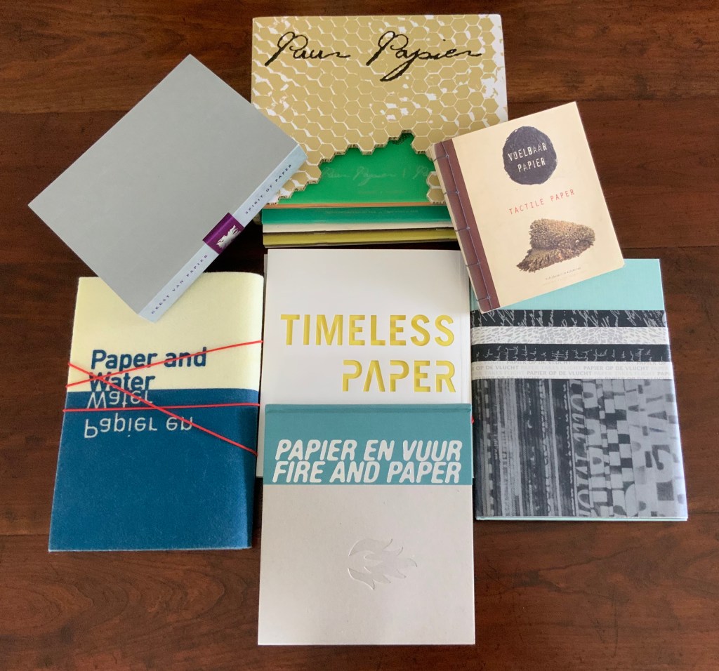 For the Books On Books Collection, Curated Collection #1 presents a challenge for display and storage alongside Fred Siegenthaler’s Strange Papers and the Gentenaar-Torley’s first seven books of the Rijswijk Paper Biennial. Helen Hiebert’s contribution to book and paper art warrants that place.