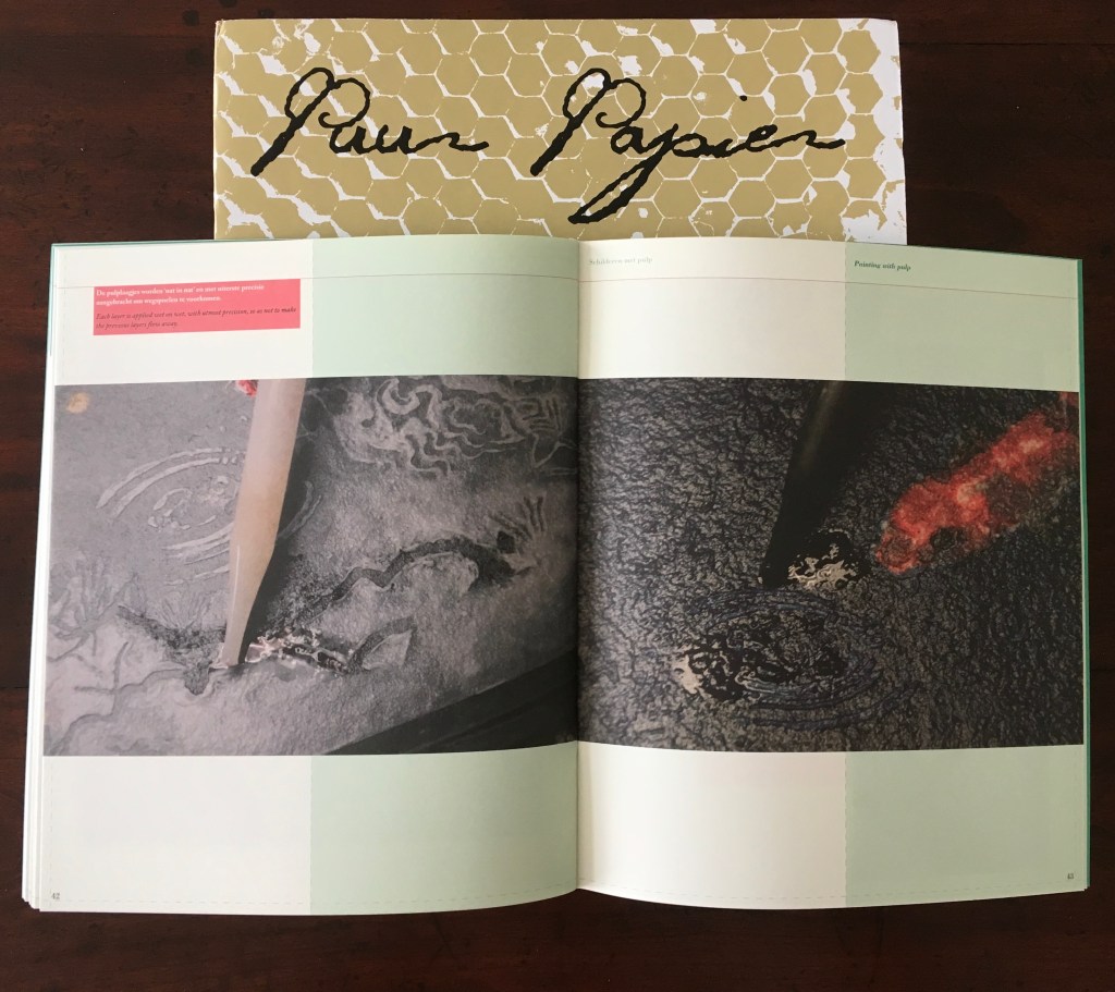 Between its rough cover made of hemp fibre from the Middelste Molen, the only authentic water-wheel and steam-engine powered paper production mill in the Netherlands, Book 5 serves up a thoroughly accessible scientific essay on how water and fibre unite to form paper. The follow-on essay about the hand-formed and machine-made paper manufactured at the Middelste Molen makes the science of the preceding essay even more palpable. Looking back to the Richard de Bas mill mentioned in the first Biënnale publication, the reader might be tempted into a pilgrimage from Ambert to Loenen (if not, the links provide films of the two working museums).