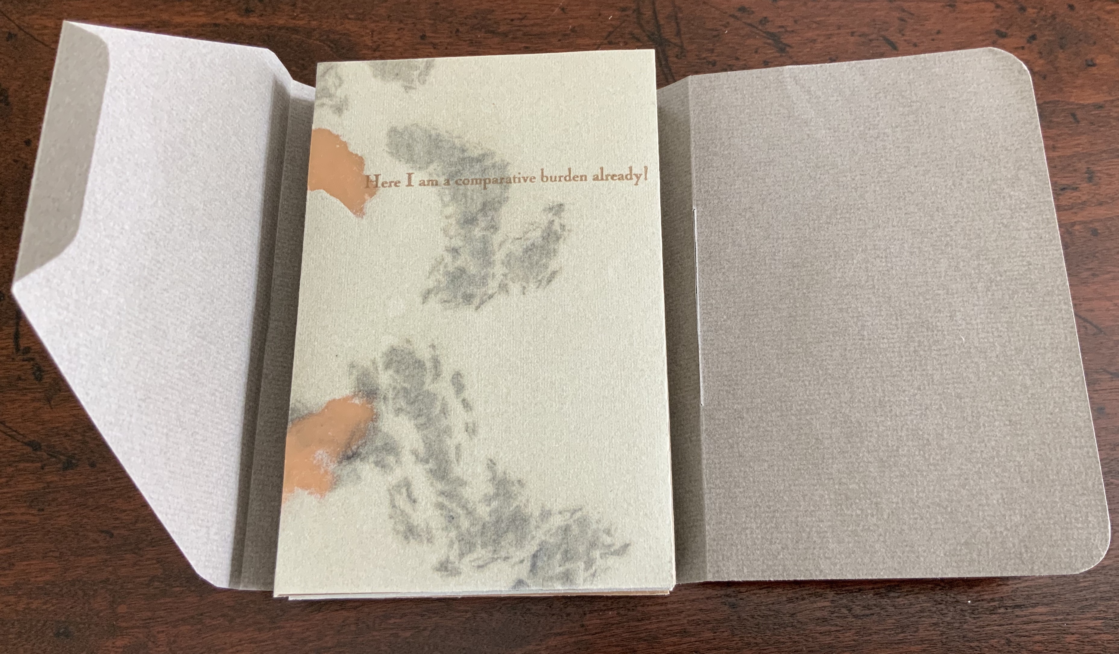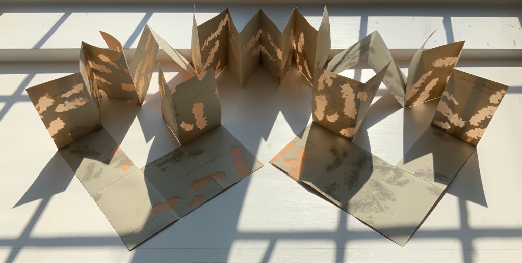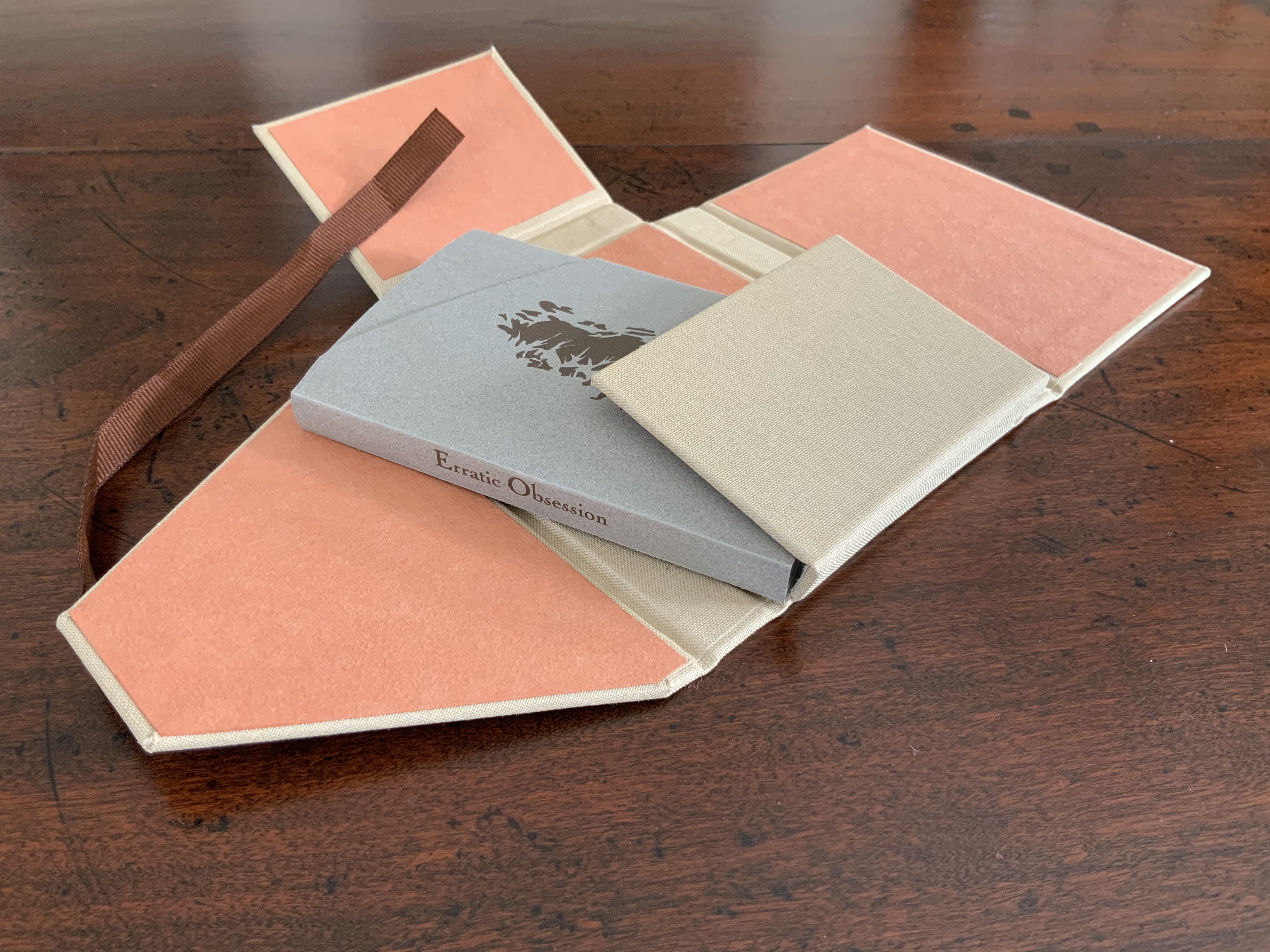 A cautionary, or perhaps encouraging, note though: the fact that some structures can enfold others will frustrate readers with strict classificatory minds and exhilarate the more freewheeling. The Phelps’ Blizzard Book highlighted above includes in its sections items exemplifying the Flag Book and Fishbone structures. Aerssens’ Memories is even more so an integrated variant of the Panorama Book structure, featuring as it does panels within panels, two 8-leaf booklets bound into front and back with paper hinges, and mylar folders holding pressed flora from Aerssen’s northern Dutch environs.