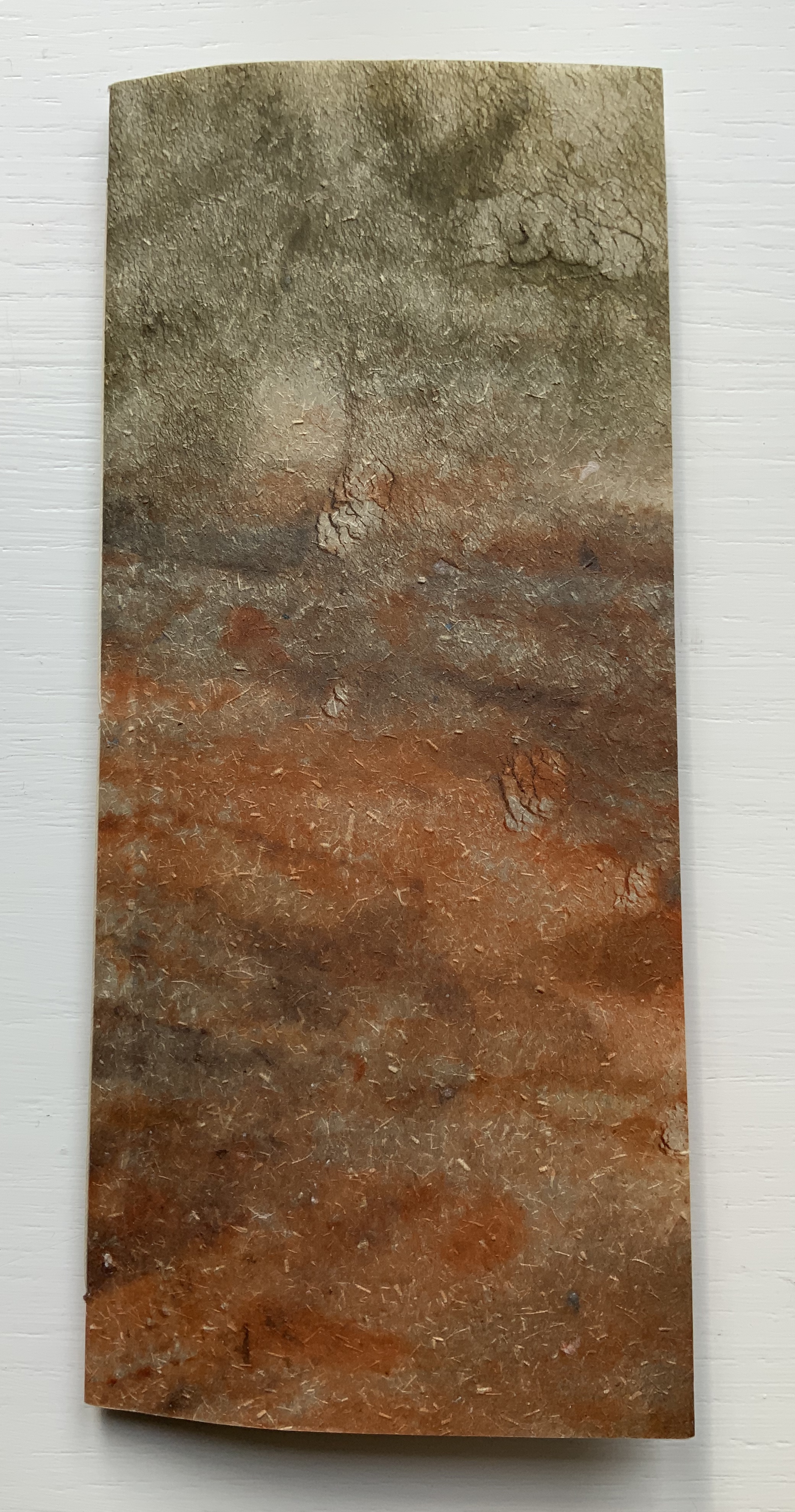 Sample 19.5 Composed of Stenotaphrum secundatum. Israel. With this sample, the pulp was washed for a further two hours after boiling and then strained through a screen under high pressure, which may account for its greater translucence. Sample 19.5’s wrinkles are more shallow than 1.1’s and resembles wax paper. Both samples have a pungent dry grass smell.