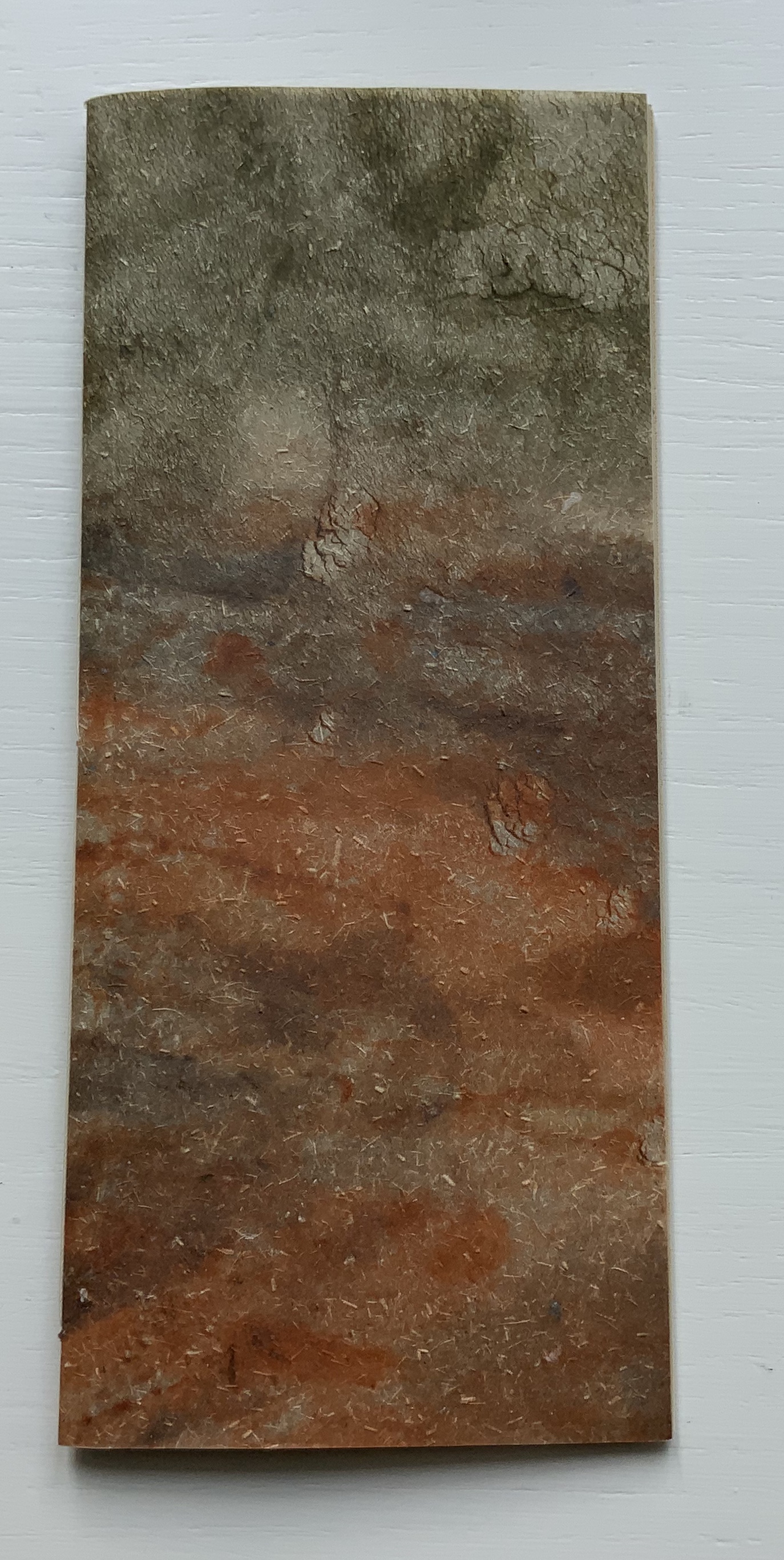 Naturally the flecks of onion skin show up differently on the two sides of the sample, and the density almost completely disguises the lines of the mesh. The way the color varies in the light at different angles accentuates the supple drape of the paper.