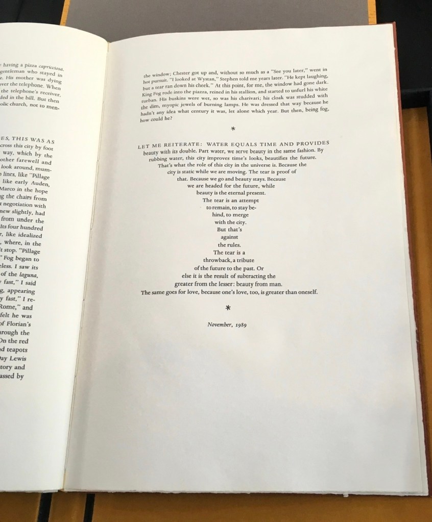 Anything to do with Venice brings to mind Peter Koch‘s edition of Joseph Brodsky’s love letter to Venice Watermark and Bodil Rosenberg‘s sculptural evocation of that city in Canal Grande.