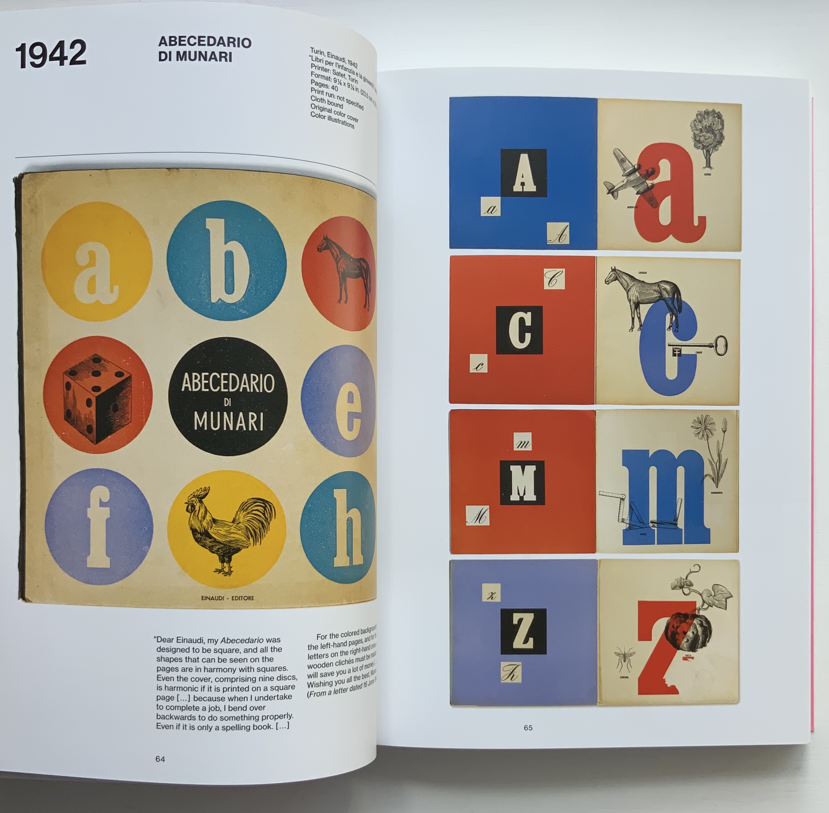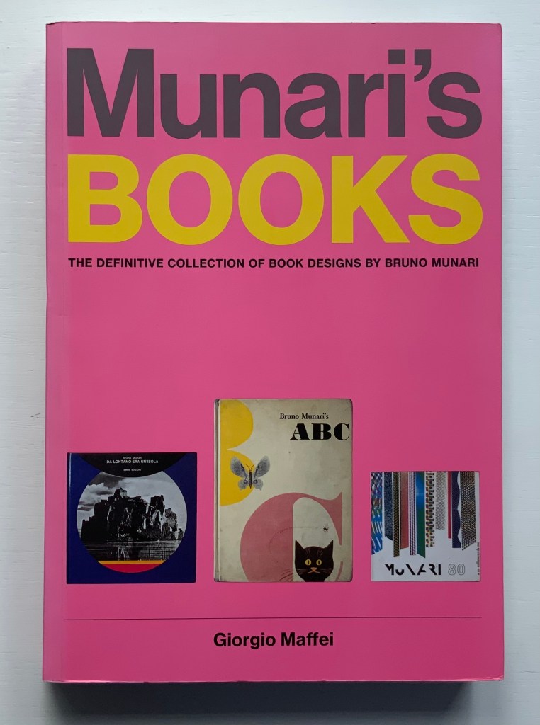 Giorgio Maffei’s 2008 definitive collection of book designs by Bruno Munari brings together two of Italy’s renowned book artists. Giorgio Maffei’s own work, his writing and gallery/bookshop (highlighted by his son Giulio Maffei’s extraordinary video catalogues Le vite dei libri) warrant a catalogue raisonné in their own right. The Italian edition published by Munari’s long-time publisher Maurizio Corraini was followed up in 2015 by this translation by Martin John Anderson and Thomas Marshall in 2015. For the Books On Books Collection, one of the great pleasures of Munari’s works is its attention to the alphabet, which this book documents.