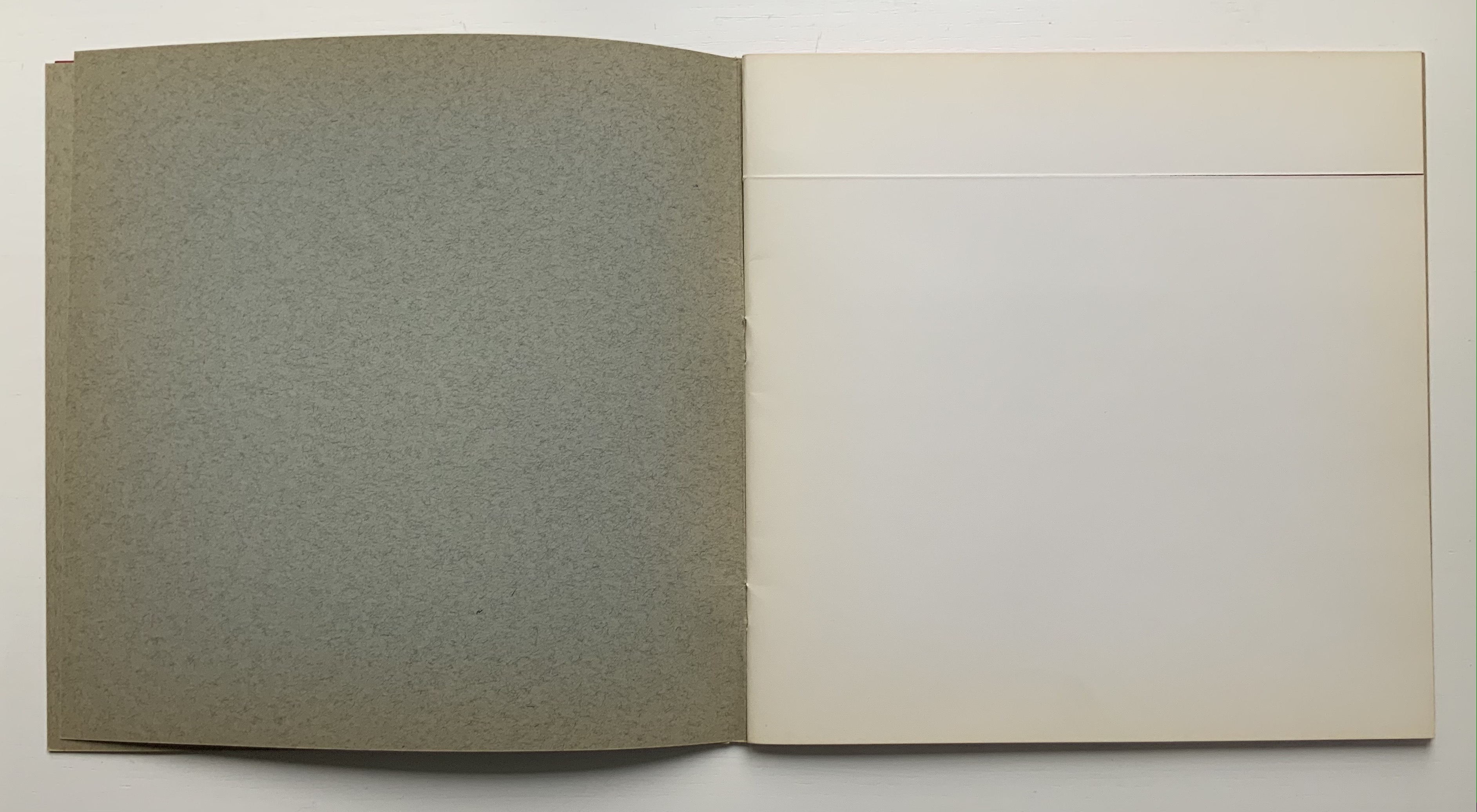 Munari’s many series of illegible books tap into book artists’ longstanding and ongoing preoccupation with whether a book without words can communicate information, narrative, sensations or feelings through material, shape or color and their permutations. The colors, shape, feel and binding of Libro illeggibile MN 1 evoke simple and sophisticated pleasure in their juxtaposition and sequence. The unchanging straightness of the top edge and the anchoring red thread of the binding set off the changeability of shapes and colors.