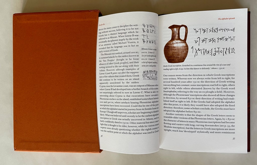 The Ottakar’s 2004 and Folio Society 2006 editions are out of print, which is a shame for ordering in bulk for short courses on the history of the alphabet and writing. Fortunately both are available at more-than-reasonable prices on the used book market.