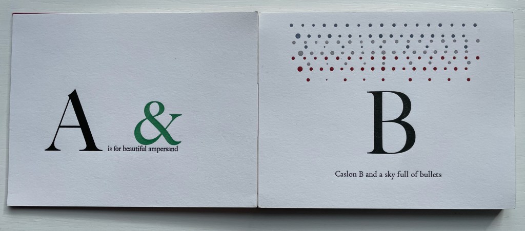 William Caslon’s Typographic ABC (1991) Marie Dern Double-sided leporello. H11 x W14 mm. 28 panels. Edition of 55, of which this is #1. Acquired from Bromer’s, 5 February 2023. Photos: Books On Books Collection.