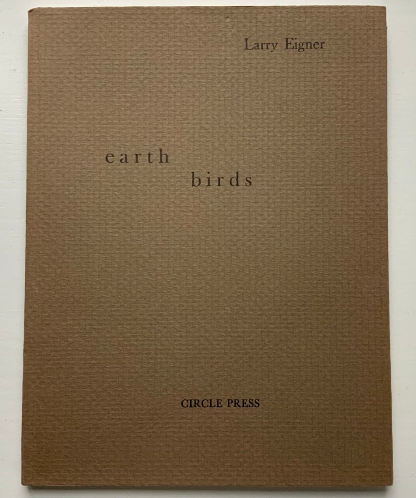Earth Birds: forty six poems written between May 1964 and June 1972 (1981) Larry Eigner (poems) and Ron King (plates) Fifty hard-bound copies, I-L, printed on pure rag-made paper with six plates printed blind intaglio and one hundred and fifty copies, 51-200, printed on Glastonbury Book stock with the same plates printed relief, in one color. Photos: Books On Books Collection.