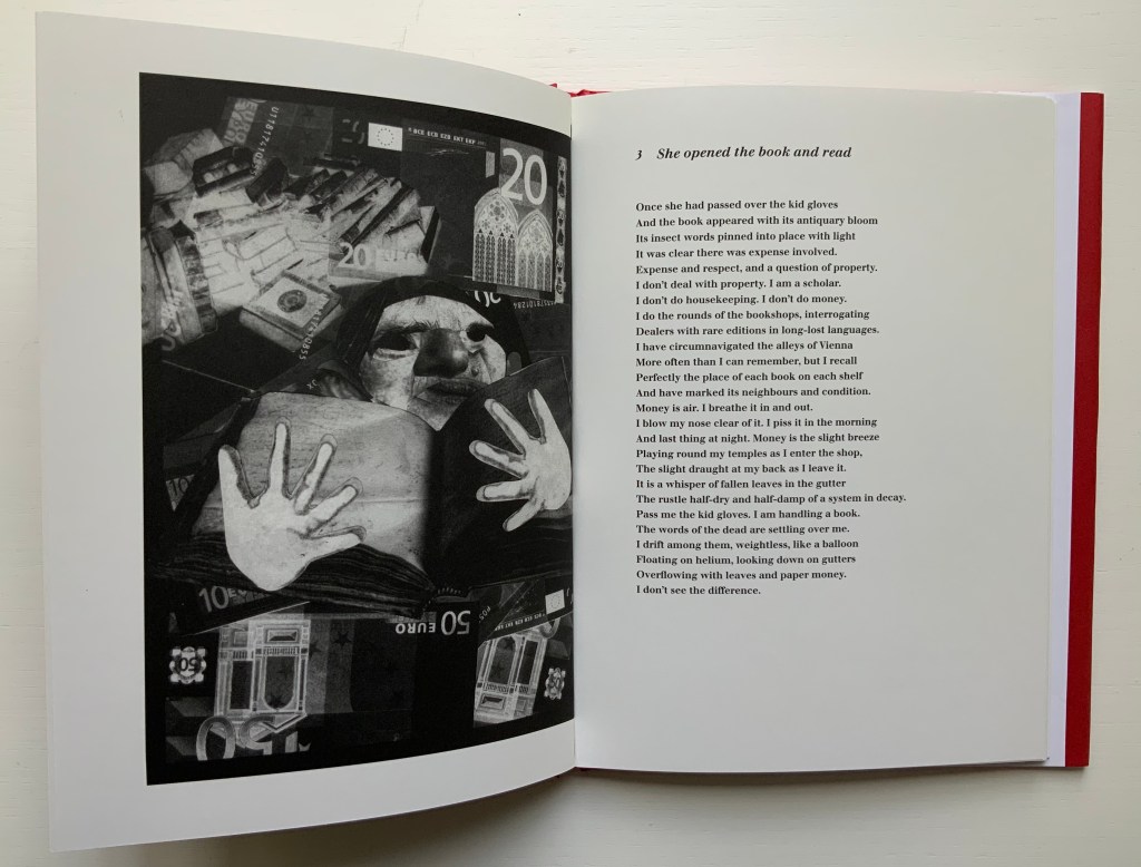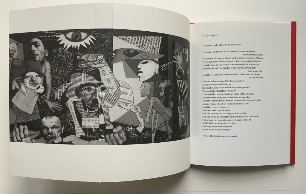 With its photo-collages of a Guernica-like fold-out, newspaper clippings of shamed collaborators, fists and human limbs, The Burning of the Books delivers a visual indictment of the 20th century that creeps into the 21st century with the added images of celebrity police ID photos and Euro currency notes. Szirtes’ take on King’s take on Canetti’s take on his main character’s solipsistic slip from obsession into madness in a world of alienating -isms is the work of art with which we — sadly, more than a decade later — keep catching up.