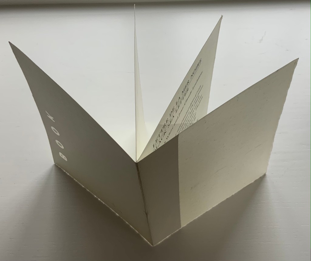 Announcement (wax and paper pamphlet, H174 x W134 mm) of Lettre de la Mer Noire/Black Sea Letter by Kenneth White (poem) and Jean-Claude Loubières (images and wax dipping). 1997.