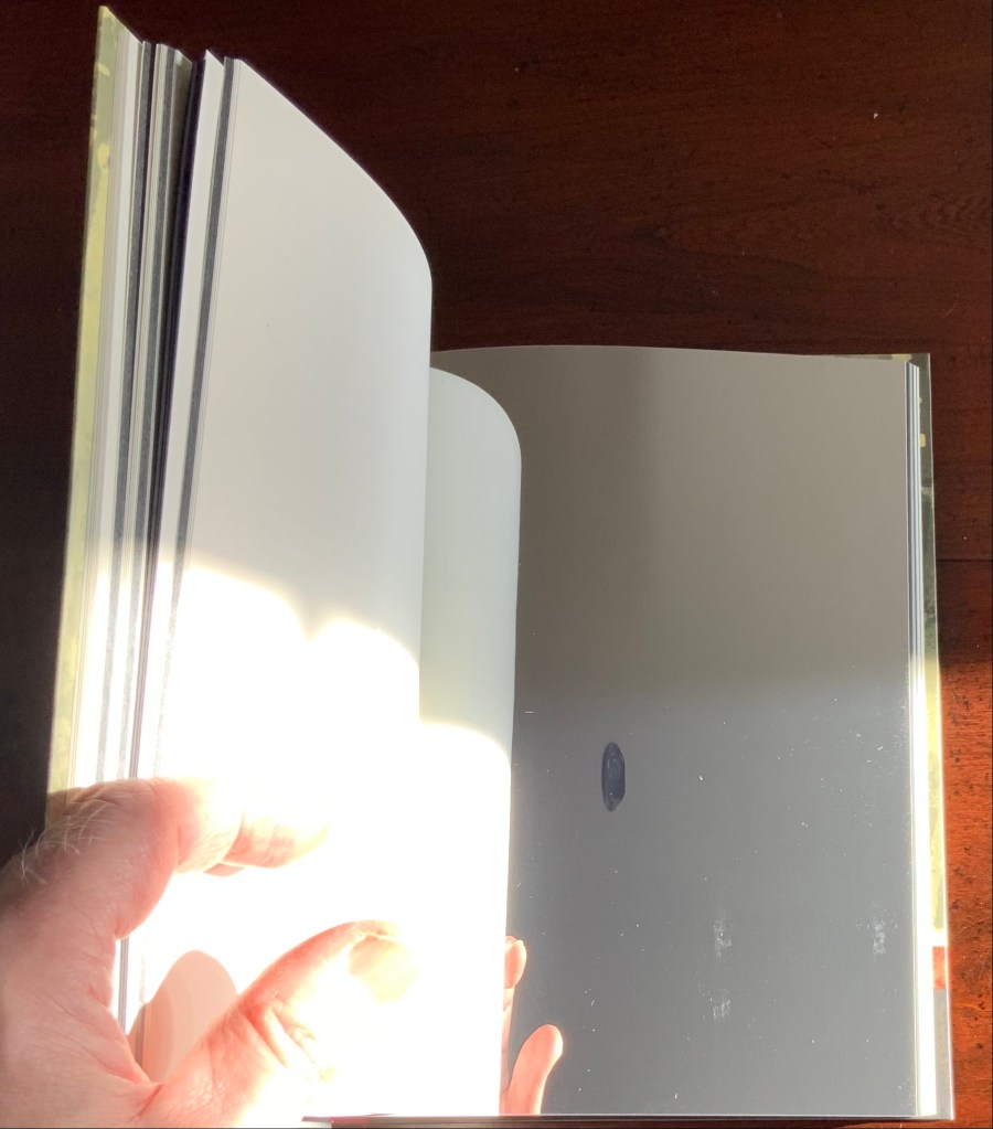 King’s catalogue raisonné does not merely illustrate his work, it illustrates it. Inserts of mirror paper, wax paper and a pop-up letter E transform what appears to be a simple codex into a treasure chest.