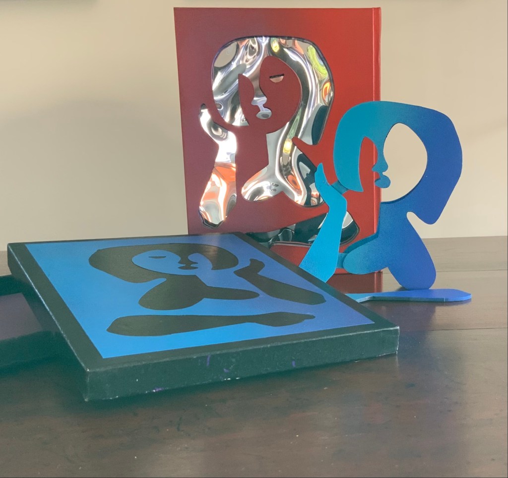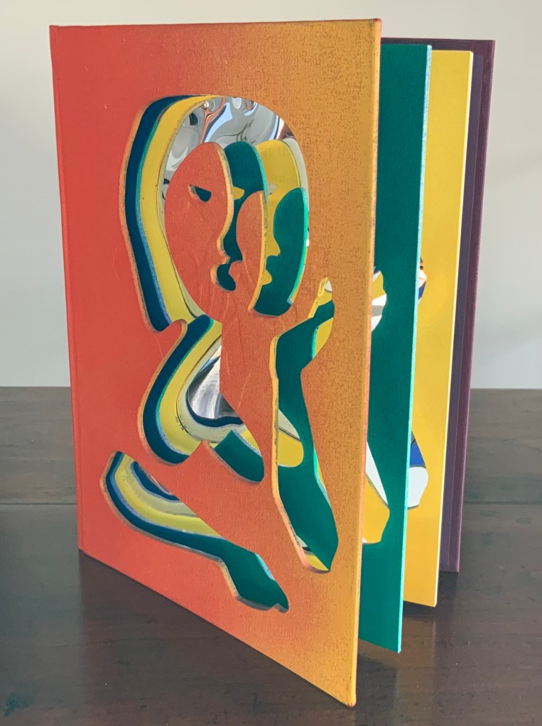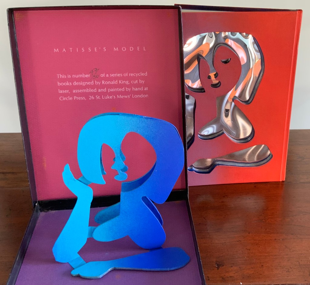 Matisse’s Model (1996) Ron King An edition of 50 signed book-works made by the same process as Acrobats. 23 x 17 cm with mirror-foil, sprayed pages, and a removable freestanding figure in collaged cardboard box. Photos: Books On Books Collection.
