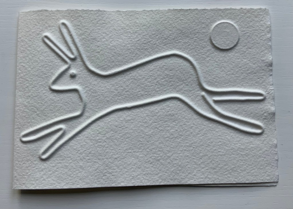 Hare (single-fold card, H125 x W180 mm), blind-embossed. 2021.