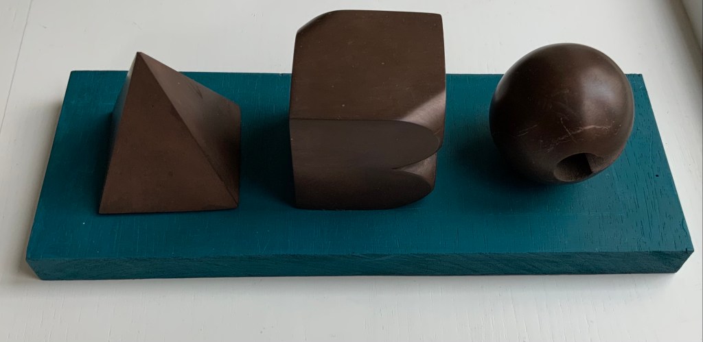 The sculptural element toward which King’s work has always turned is on display in the title and forms of Matisse’s Model. The mirror paper appears as it must for any attractive model.
