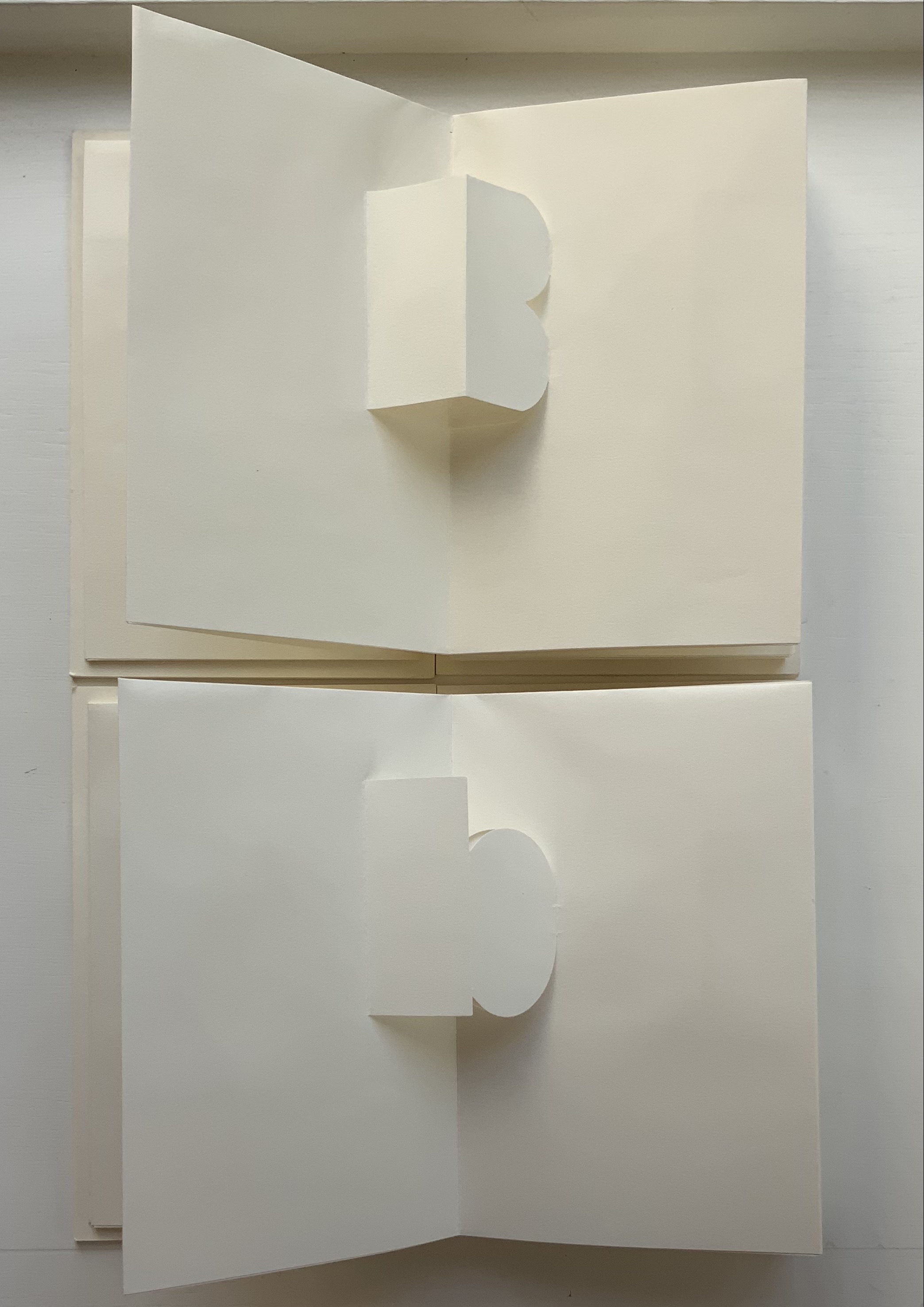 Alphabet II (1999) Ron King Pop-up poster. H760 x W500 mm. The letters have been cut onto a 190lb Waterford paper and mounted onto a heavier version of the same stock. Edition of 200 signed. Acquired from Circle Press, 26 June 2015. Photo of Cooking the Books, p. 101: Books On Books Collection.