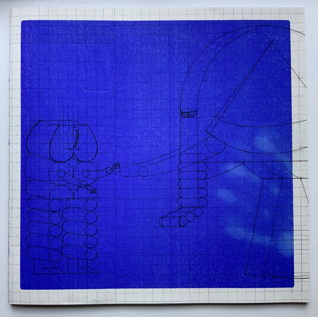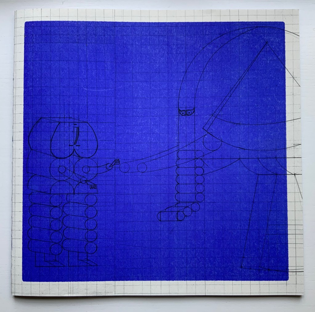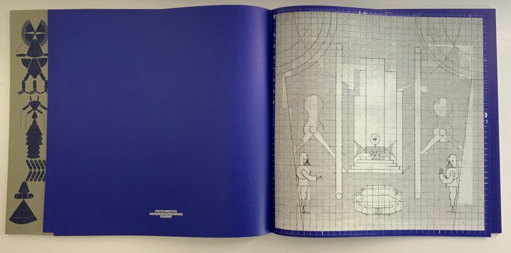 The final colorless two pages consist of cut-outs inviting the readers’ hands to create more strange figures along with the king’s mind. This element of touch recurs on the cover, which on closing the reader will find is covered in fingerprints. The cover’s ink is thermochromatic, fading away under the warmth of touch, returning as it cools and waiting for our next blind touch.