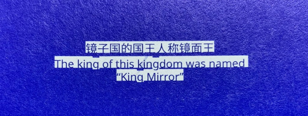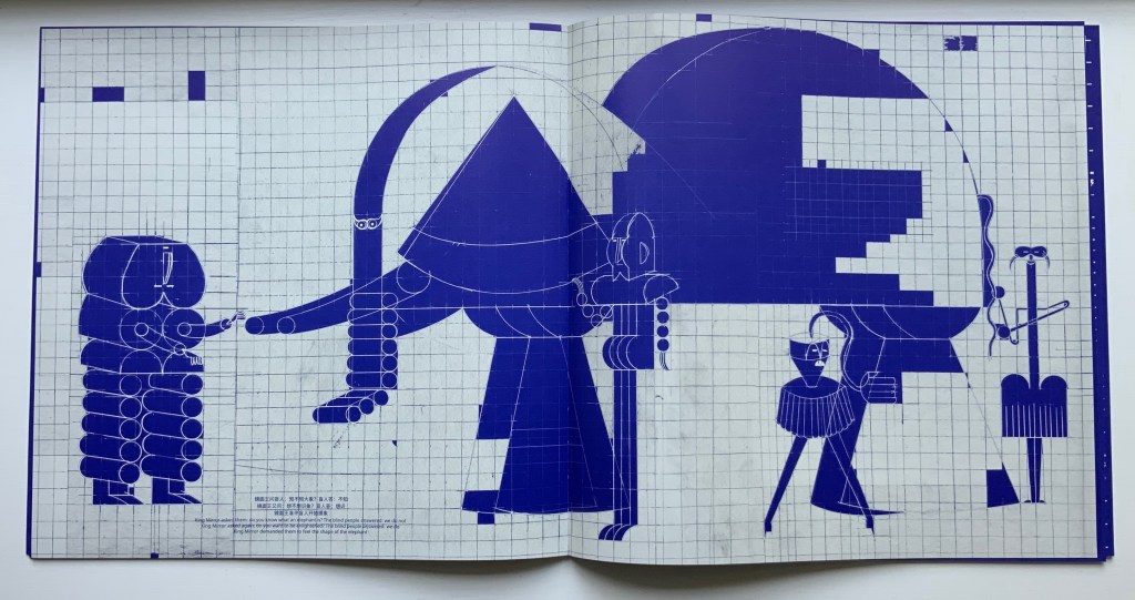 Working with binding designer Zhong Yu and tbook designer Lu Min of the “One and One Half Atelier”, Shanghai-based Xiao Long Hua has found a sympathetic outlet and form for his creative vision. His first work with them is The Blind Men and the Elephant, a variation on the parable in the Buddhist sutra Tittha Sutta. It takes place in the kingdom “Mirari”, ruled by King Mirror.