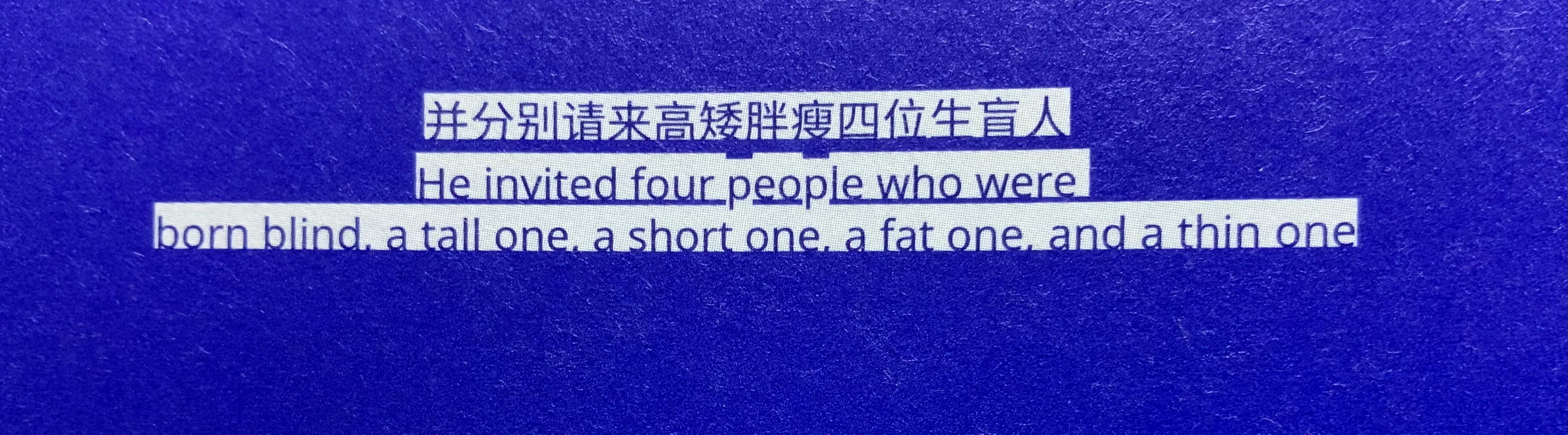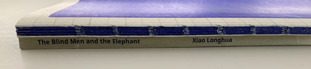 The Blind Men and the Elephant (2019) Xiao Long Hua Sleeved paperback, exposed sewn spine. Sleeve: 305 x 305 mm. Book: H303 x W305 mm. 52 pages. Edition of 500, of which this is #178. Acquired from Northing, 18 May 2022. Photos: Books On Books Collection.