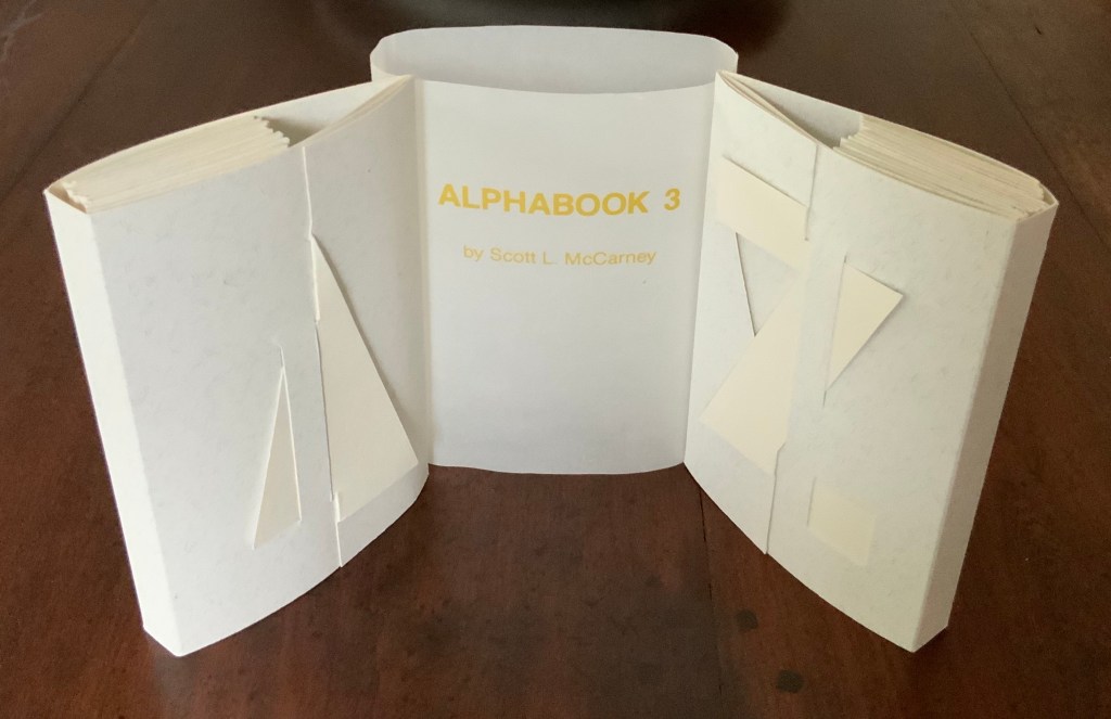 The codex form receives McCarney’s playfulness in Alphabook 10. The artist writes: