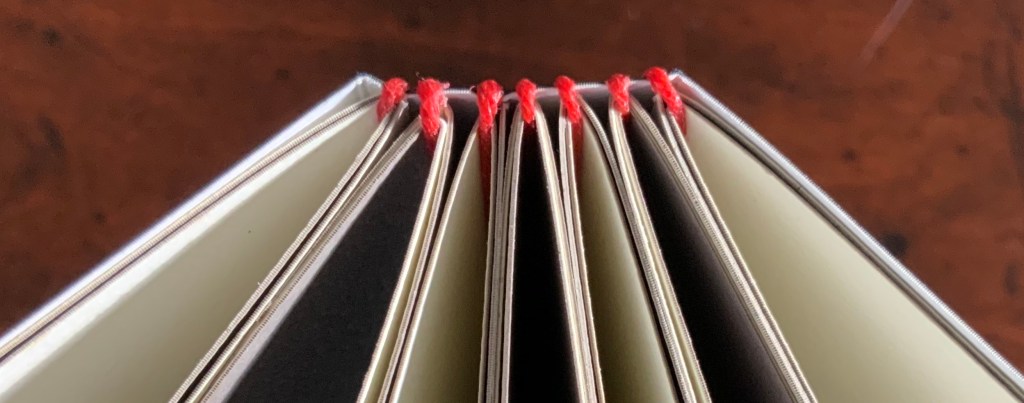 The binding warrants a closer look as well. Outside and inside, the red thread, its pattern and function stand out.