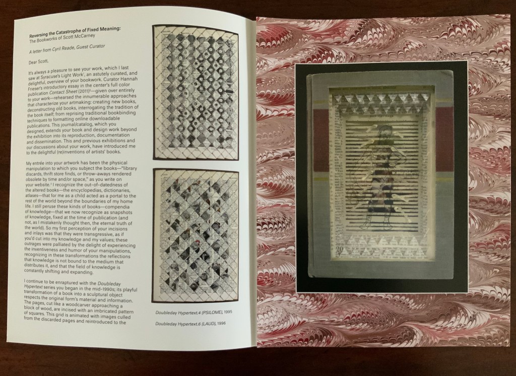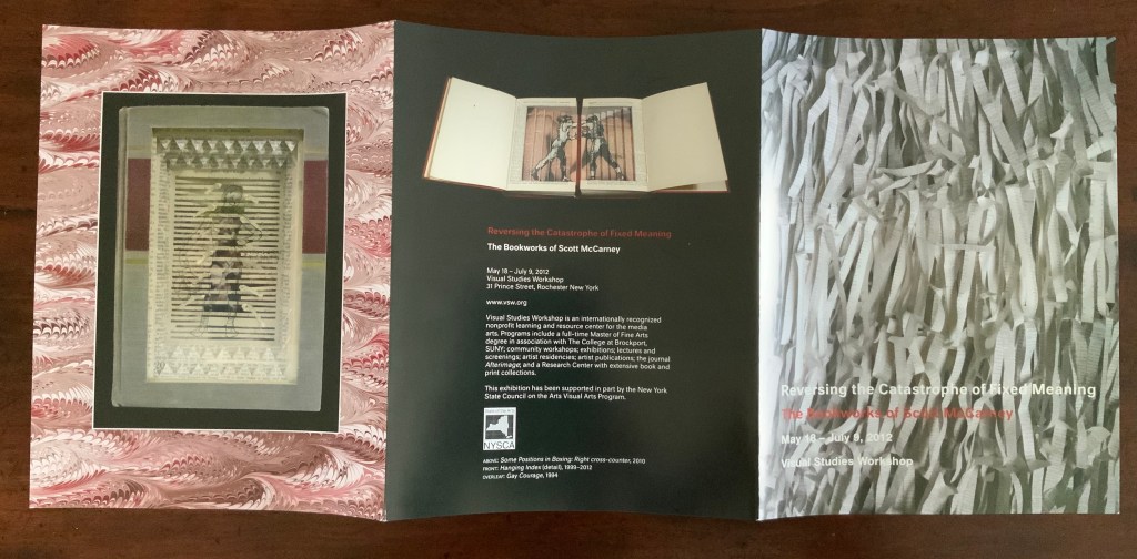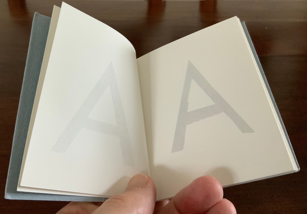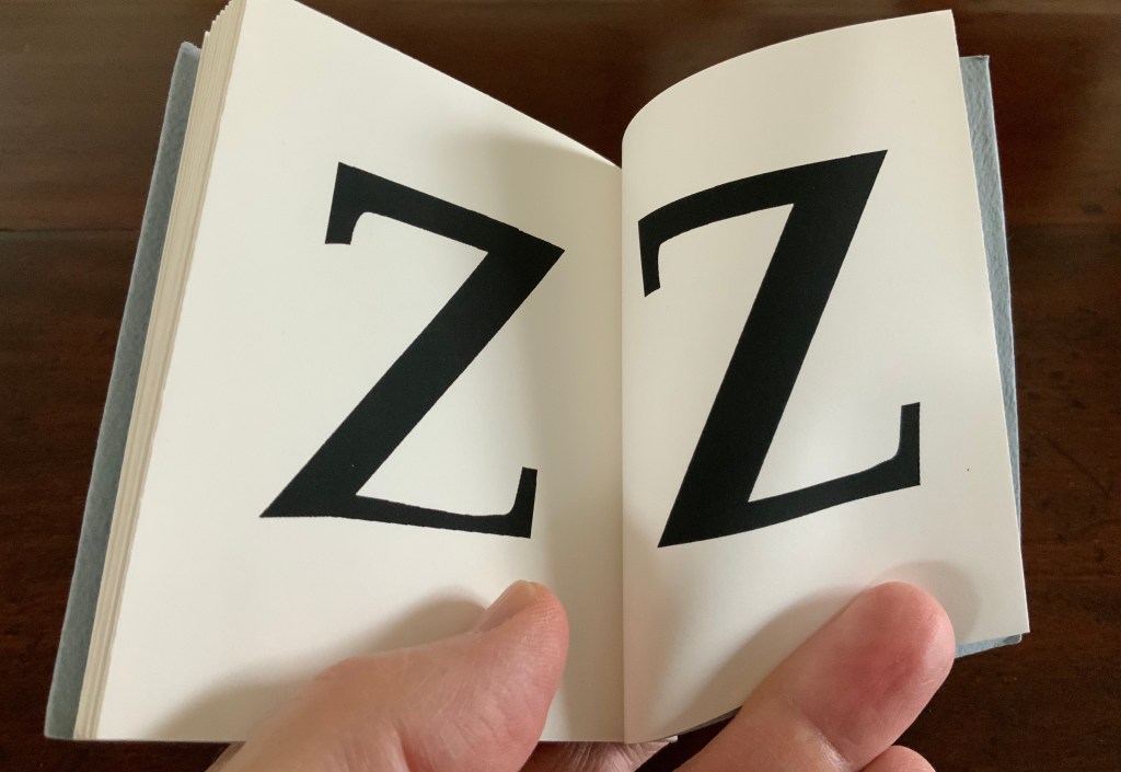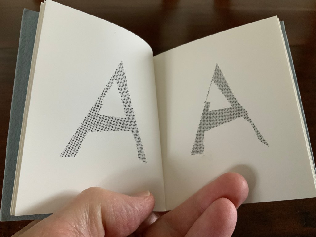 One can see an affinity with Claire Van Vliet’s Tumbling Blocks for Pris and Bruce (1996) and Scott McCarney’s AlphaBooks (1981-2015), which underscores the cross-currents of alphabet books and artists’ books.