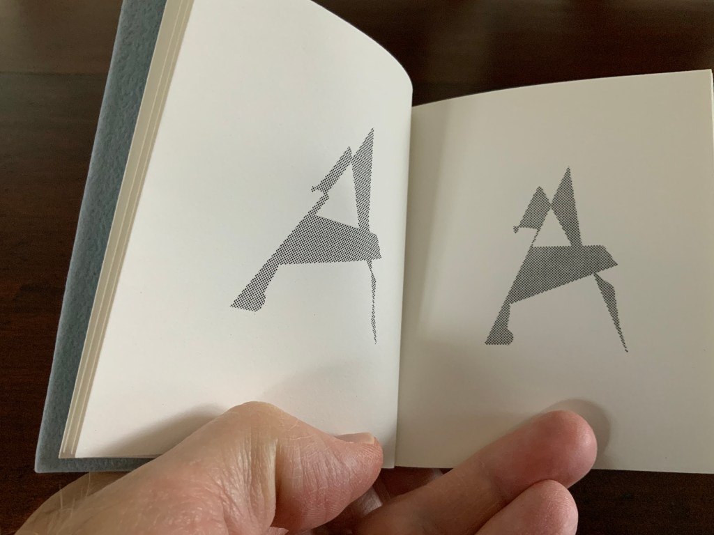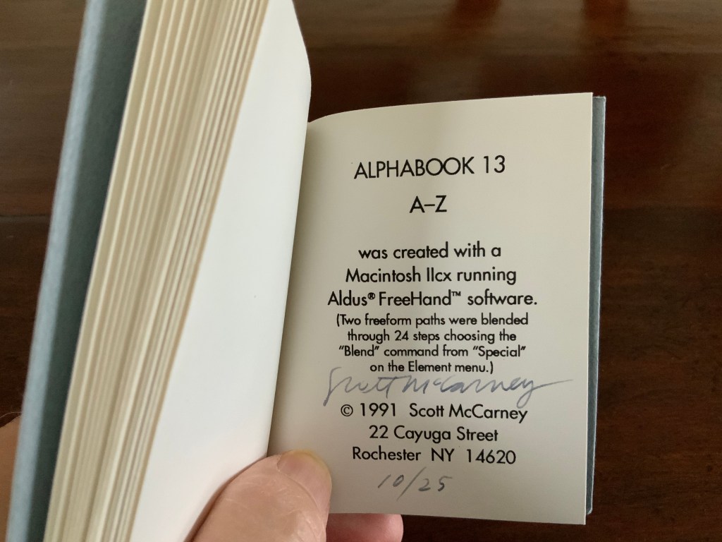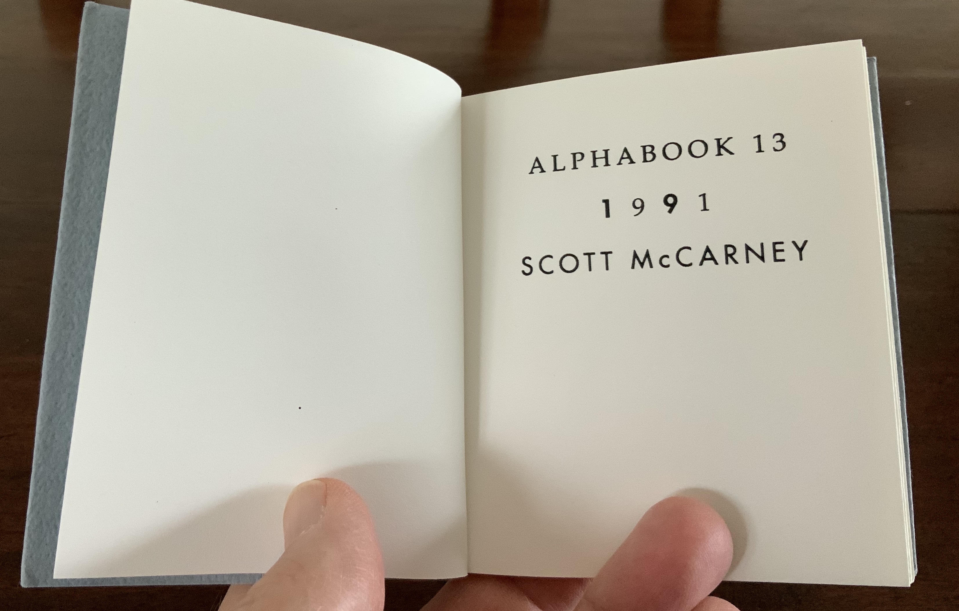 Alphabook 13 (1991) Scott McCarney Flipbook, created with a Macintosh IIcx running Aldus® FreeHand™️ software. H100 x W92 mm. 32 pages. Acquired from the artist, 15 February 2020. Photo: Books On Books Collection.