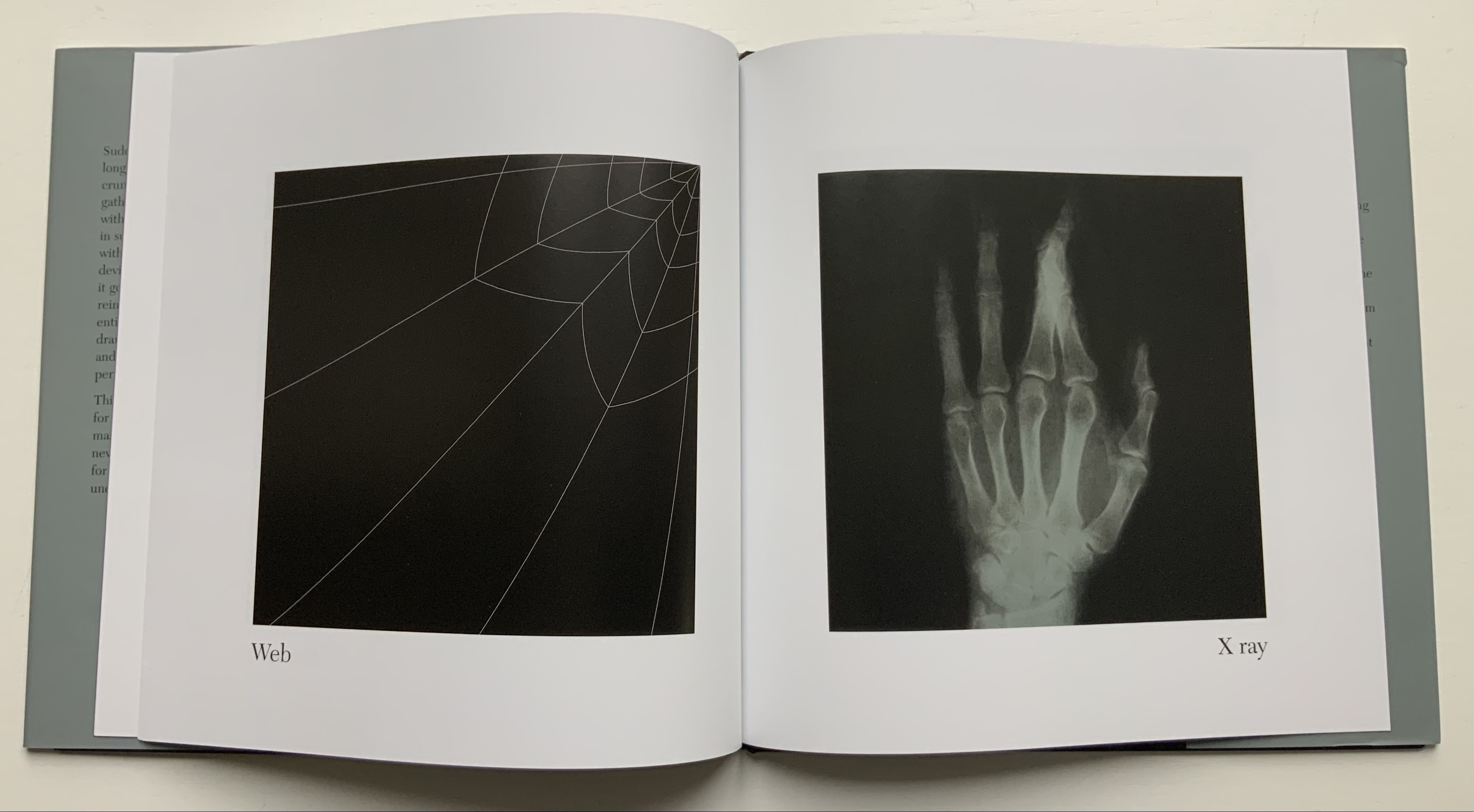 The handling of the cover and first page draw attention to the role that empty space, light and stock color will play throughout the book.