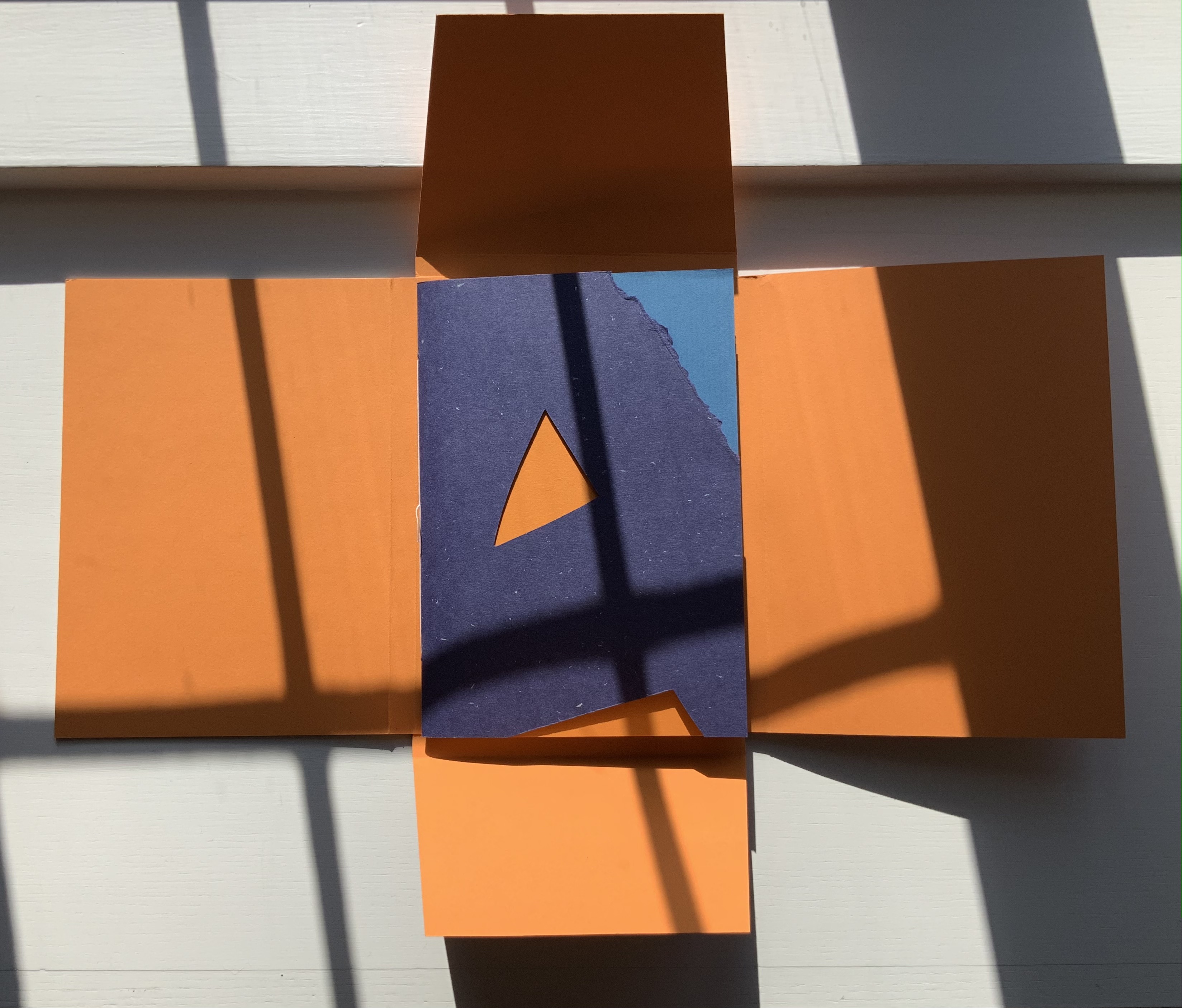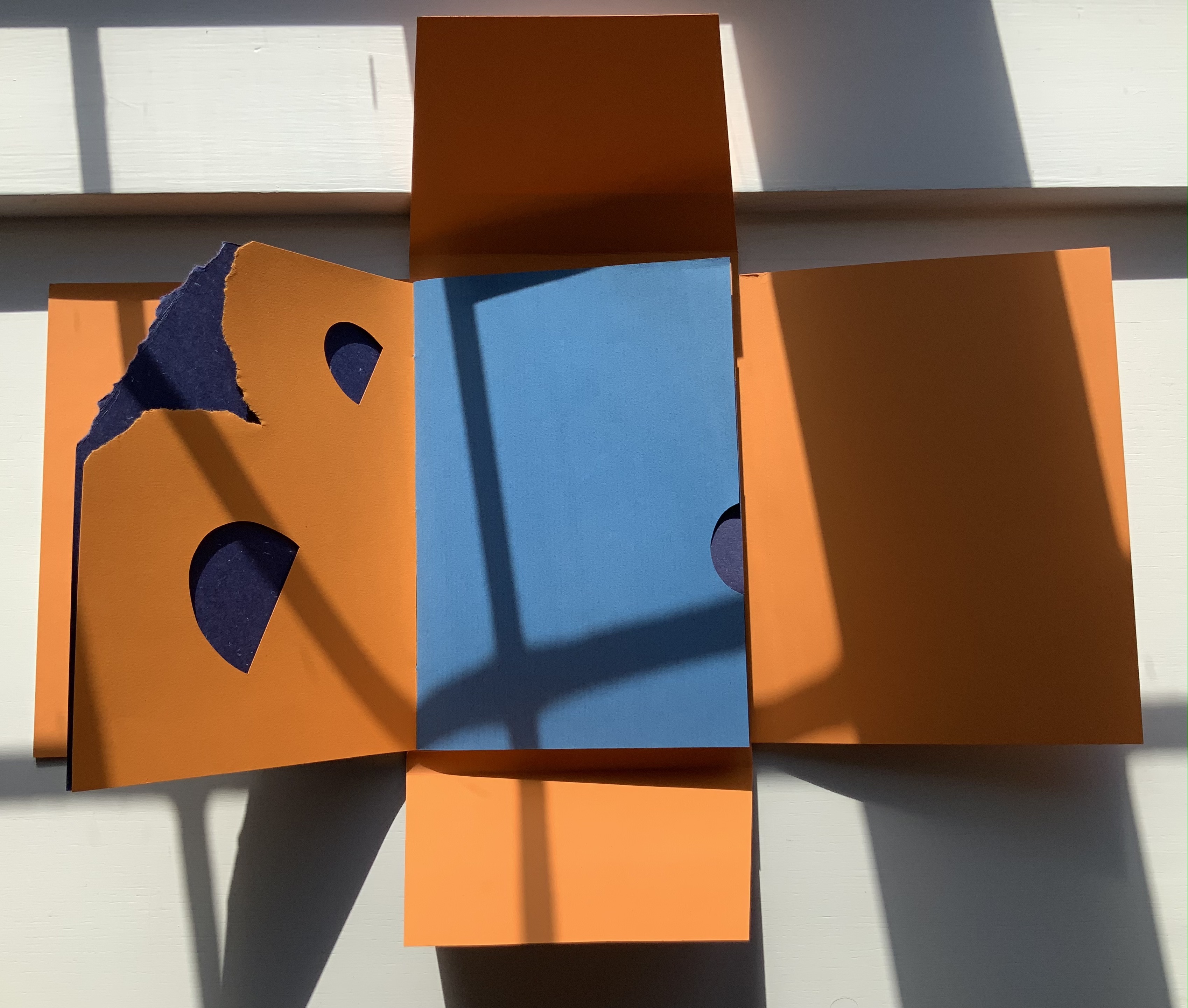 Carol Barton’s reputation for paper-engineering, supported by her well-received multi-volume The Pocket Paper Engineer, should not overshadow appreciation of her talents with watercolor and words. With its poems of free verse, scanned watercolors and pop-up structures all by the same author/artist, Land Forms and Air Currents (2014) qualifies as a champion of the Blakean tradition in artists’ books.