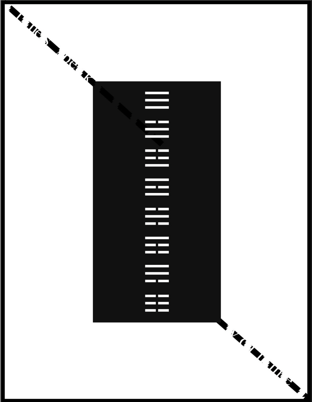 Adding another level of difficulty in reading is a background grid of red letters in small caps that appears behind the fifth T in the sequence above. It spells out a text made difficult to read by the spacing between letters and their disruption by the separate text of the black letters in the foreground and center. The visionary background text reads: