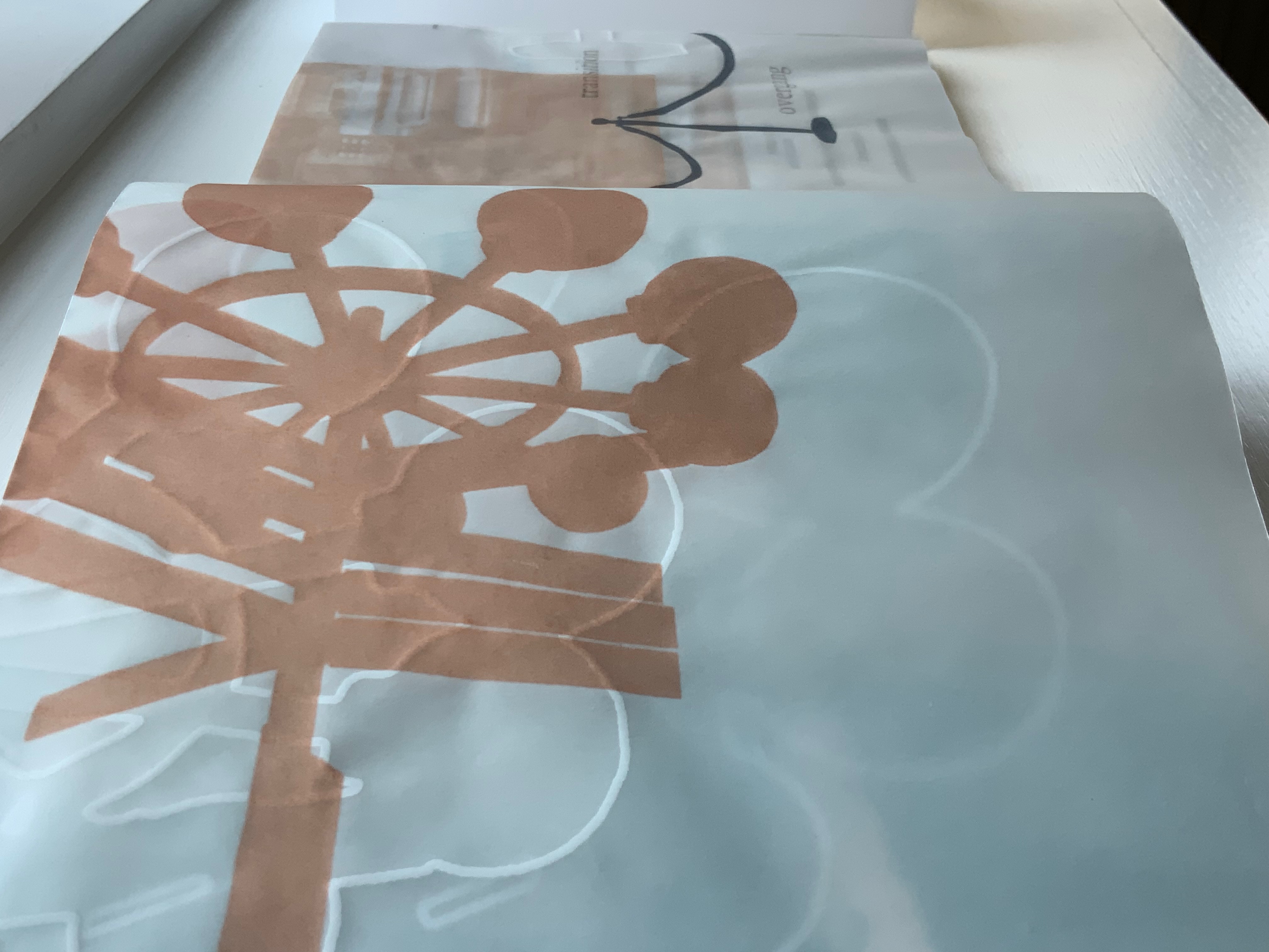 Andrew Hladky’s contributions are prints of three-dimensional works made of oil and bamboo sticks on wood panels ranging from 3 inches to 10 inches in depth. To capture this, On Innards delivers the print of It ain’t us yet its in us. Its looking out thru our eye hoals (2015) as a pop-up box (see below), and the prints of Well, This is Goodbye (2007-15) and The Clearing (2011-14) are cut and folded such that they spill out well beyond the trim size of the portfolio (also below).