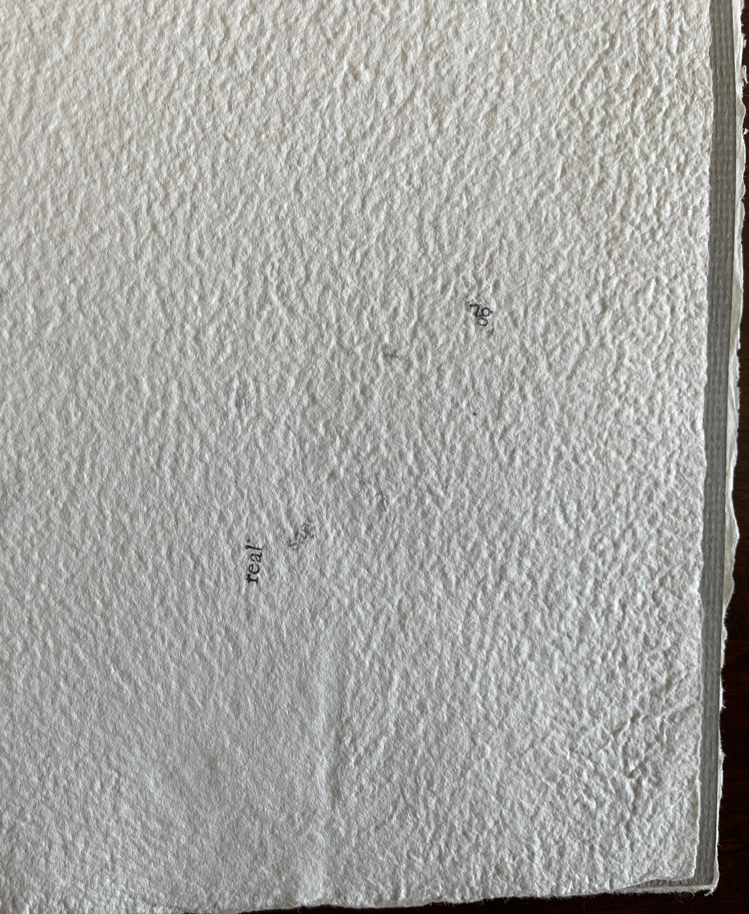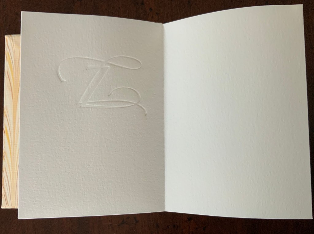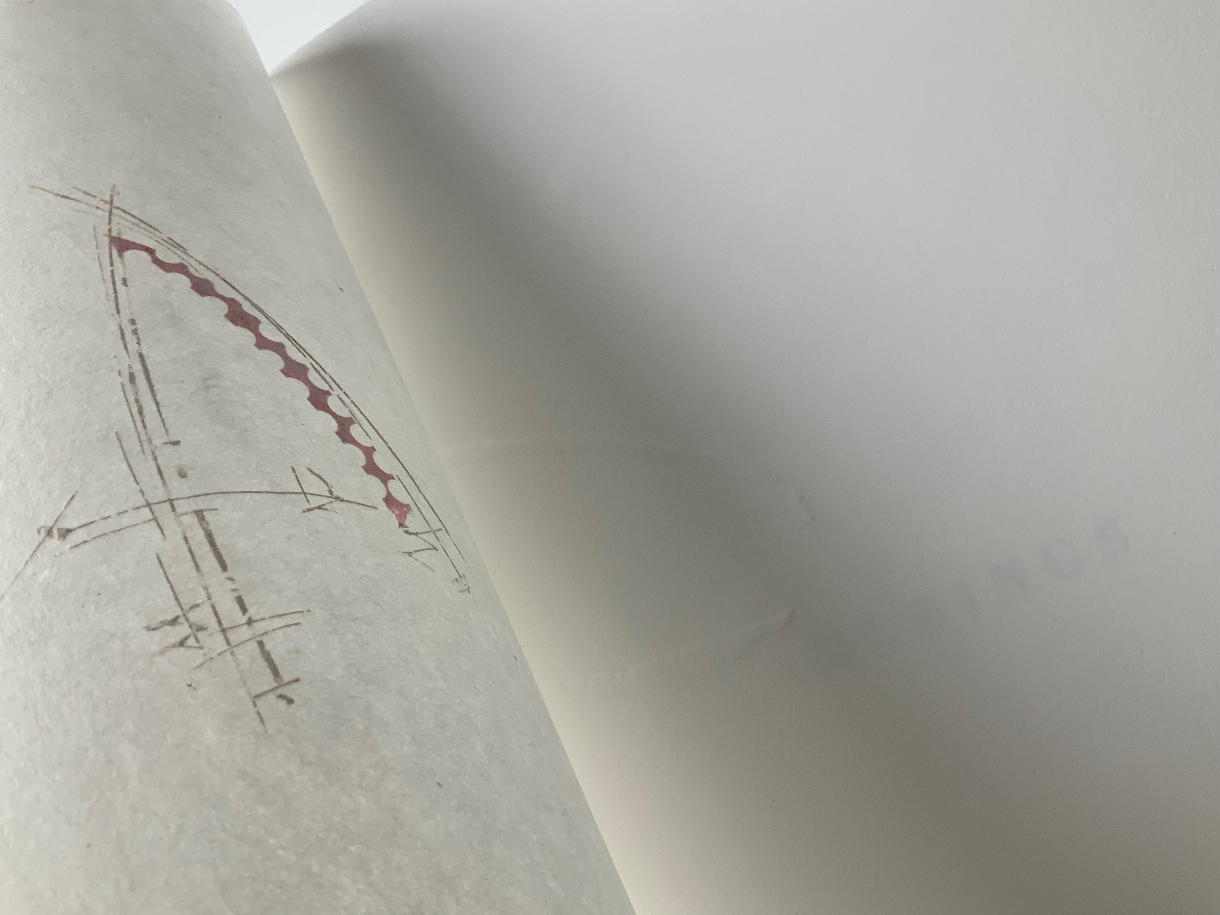 Left: Half-title. Right: Half-title turned to show translucency of kozo; note on the facing recto how the stroke from the debossed A on the title peeks through.