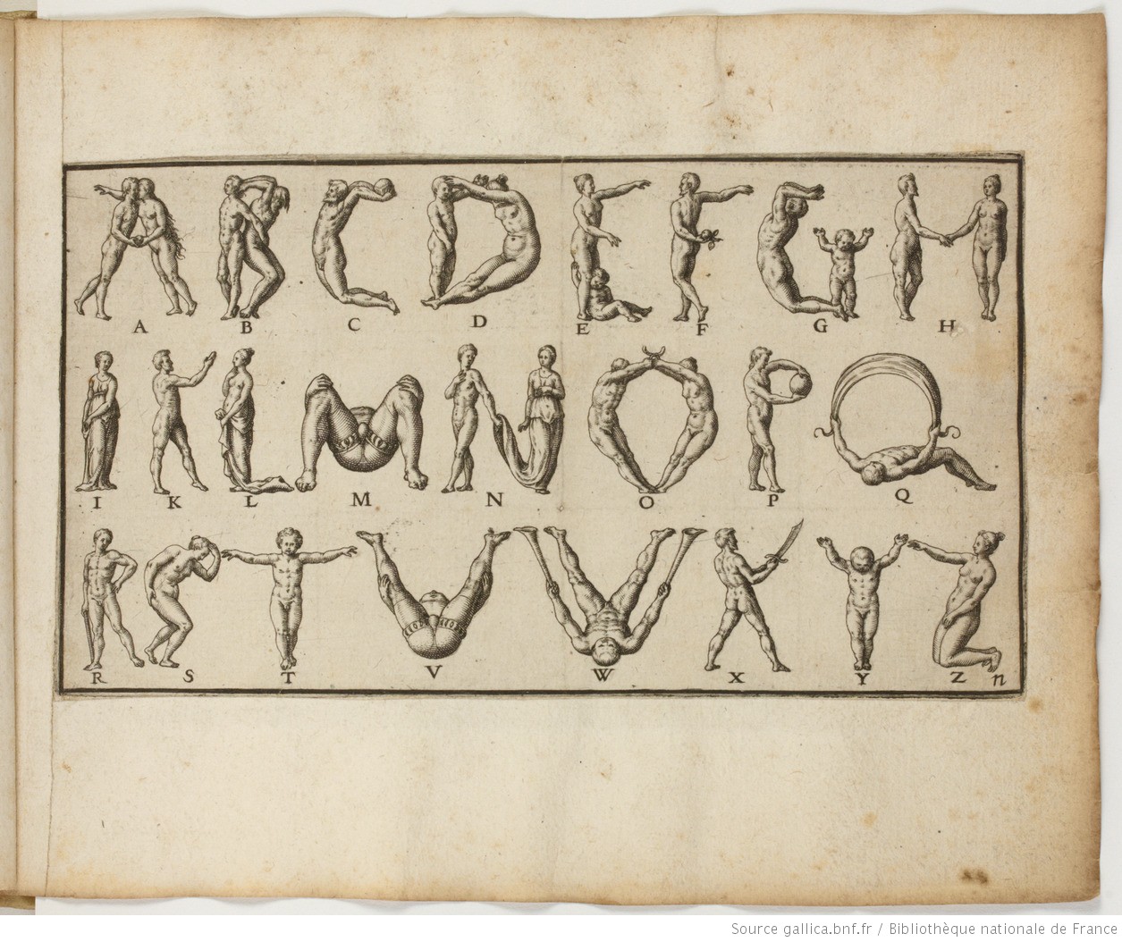 Letters R&S and the human alphabet from Alphabeta et characteres, iam inde a creato mundo ad nostra usq. tempora, apud omnes omnino nationes usurpat (1596). Images: Bibliothèque nationale de France.