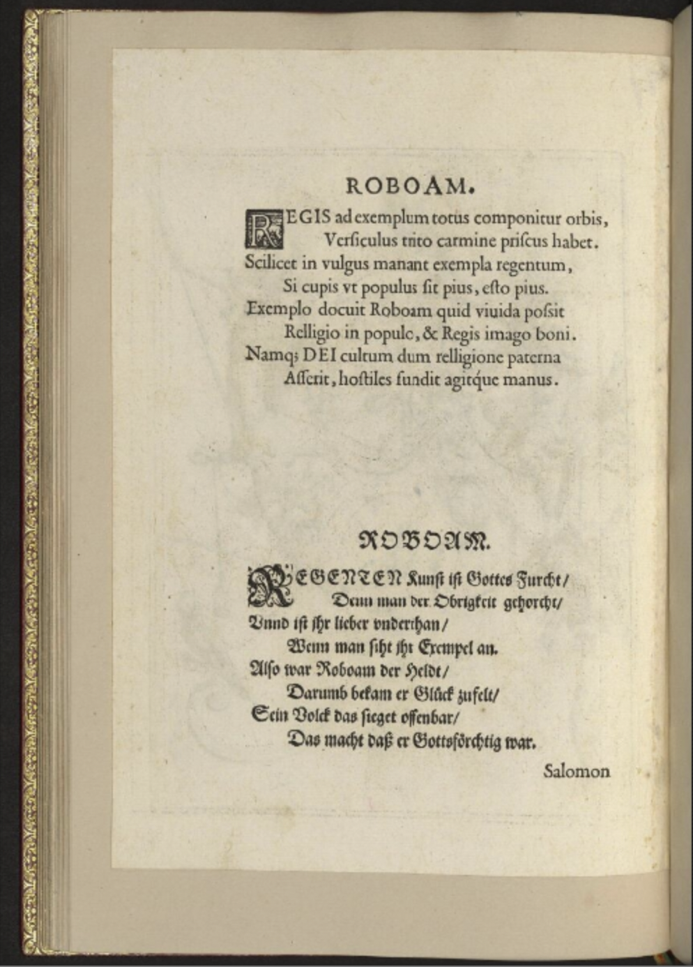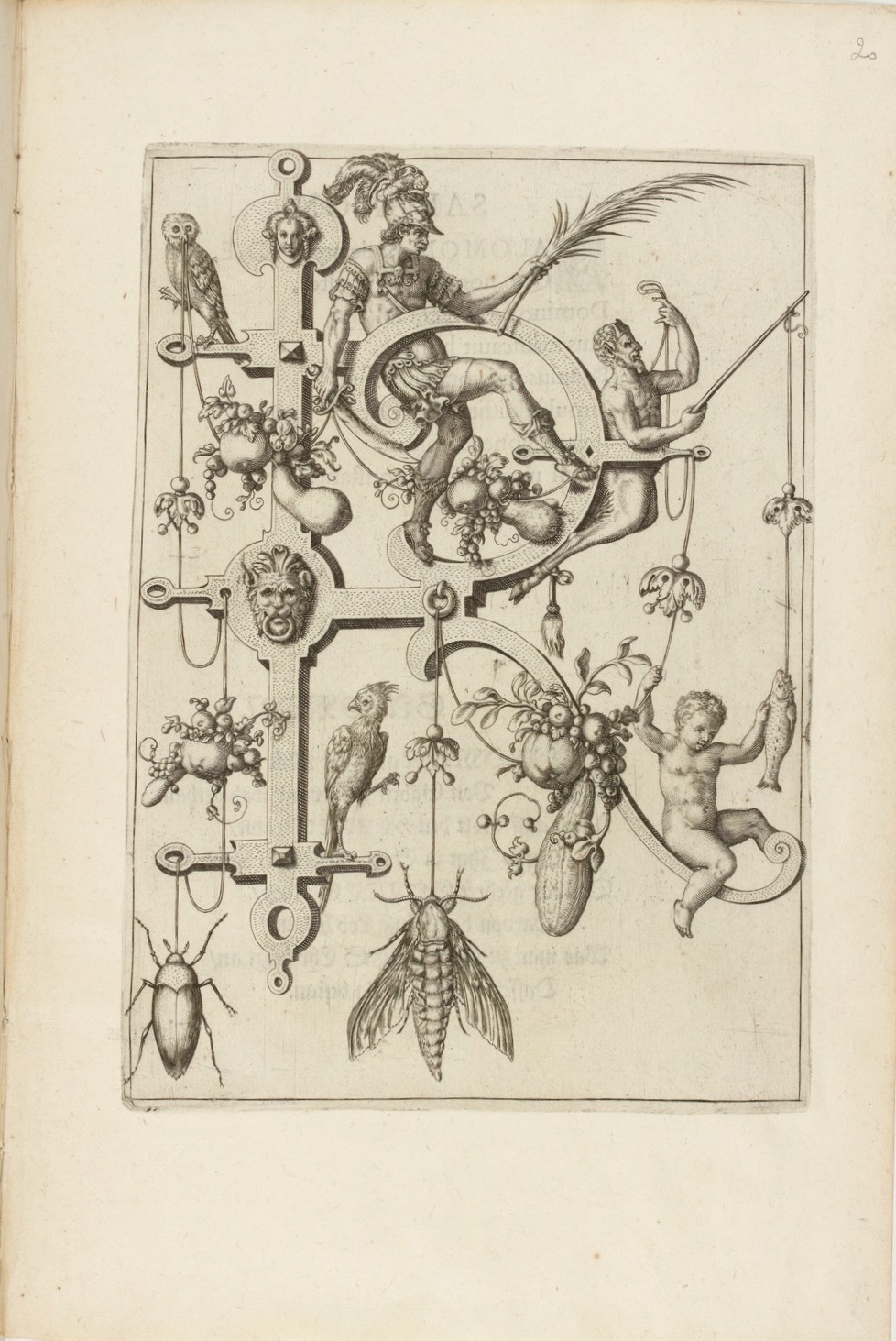 The Neiw Kunstliches Alphabet presents the letters of the alphabet adorned with Judaeo-Christian allegorical figures, vegetation, birds and animals, instruments, implements, weapons and regal emblems. An octave in Latin and one in German provide hints for identifying the allegorical and emblematic references. At the end of the De Brys’ alphabet atlas Alphabeta et characteres, iam inde a creato mundo ad nostra usq. tempora, apud omnes omnino nationes usurpat (1596) depicting dozens of alphabets — the Chaldaic, Egyptian, Hebrew, Greek, Slavonic, Hispanic, Latin and so on — another decorated alphabet and an alphabet formed of human figures make their appearance.