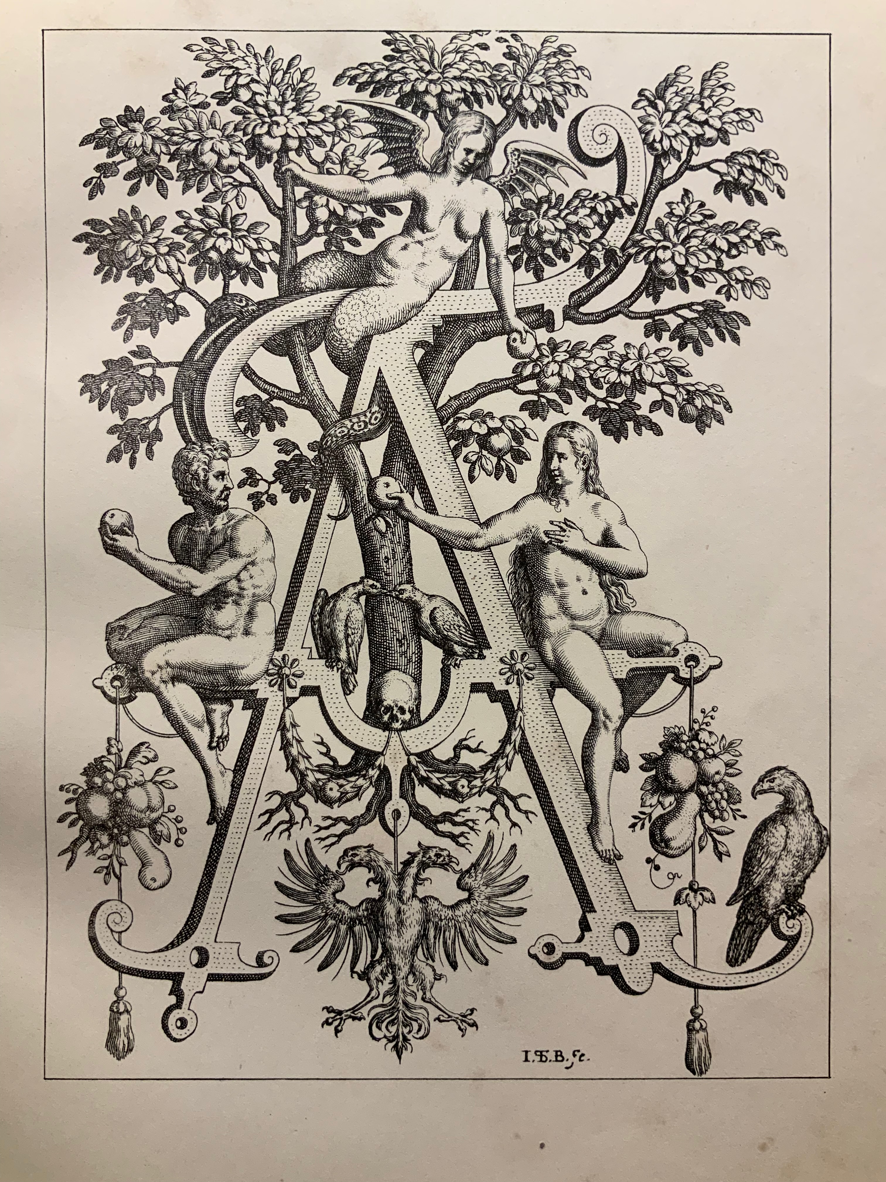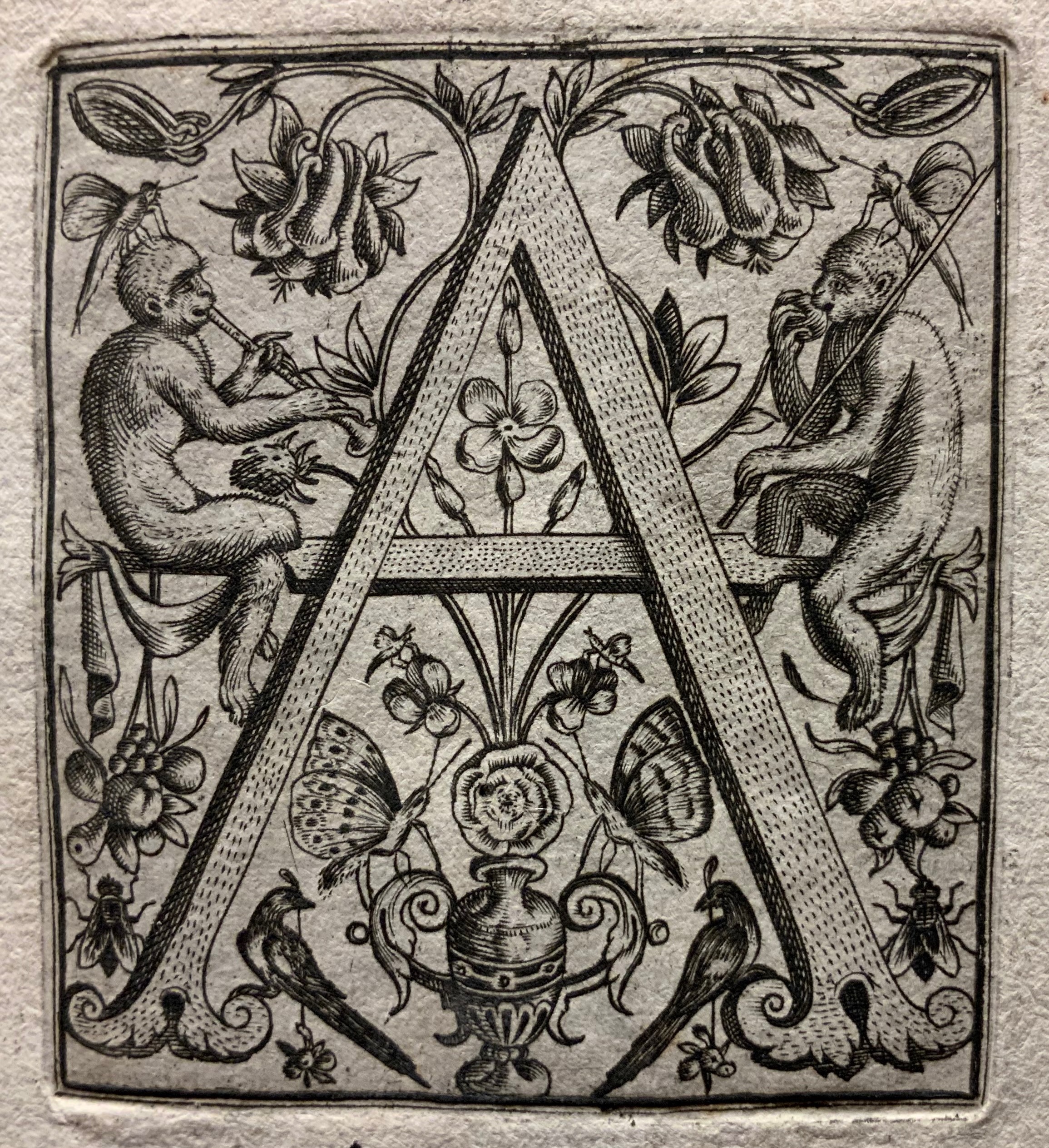 Johann Theodor de Dry and his sons were copperplate engravers, best known for their Grands and Petits Voyages (1590-1634) of 57 separate parts, containing over 500 different engravings illustrating the explorations of the world beyond the shores of 16th and 17th century Europe. While the De Brys’ place in the history of book art might be traced from their illustrations of Hans Staden’s tales of Brazilian cannibals to Oswald de Andrade’s “Manifesto Antropófago” [Cannibal Manifesto] (1928) and Moussa Kone’s Nowhere Land (2017), their equally strong, if not better, claim rests on the Neiw Kunstliches Alphabet (1595) and the Alphabeta et characteres (1596).