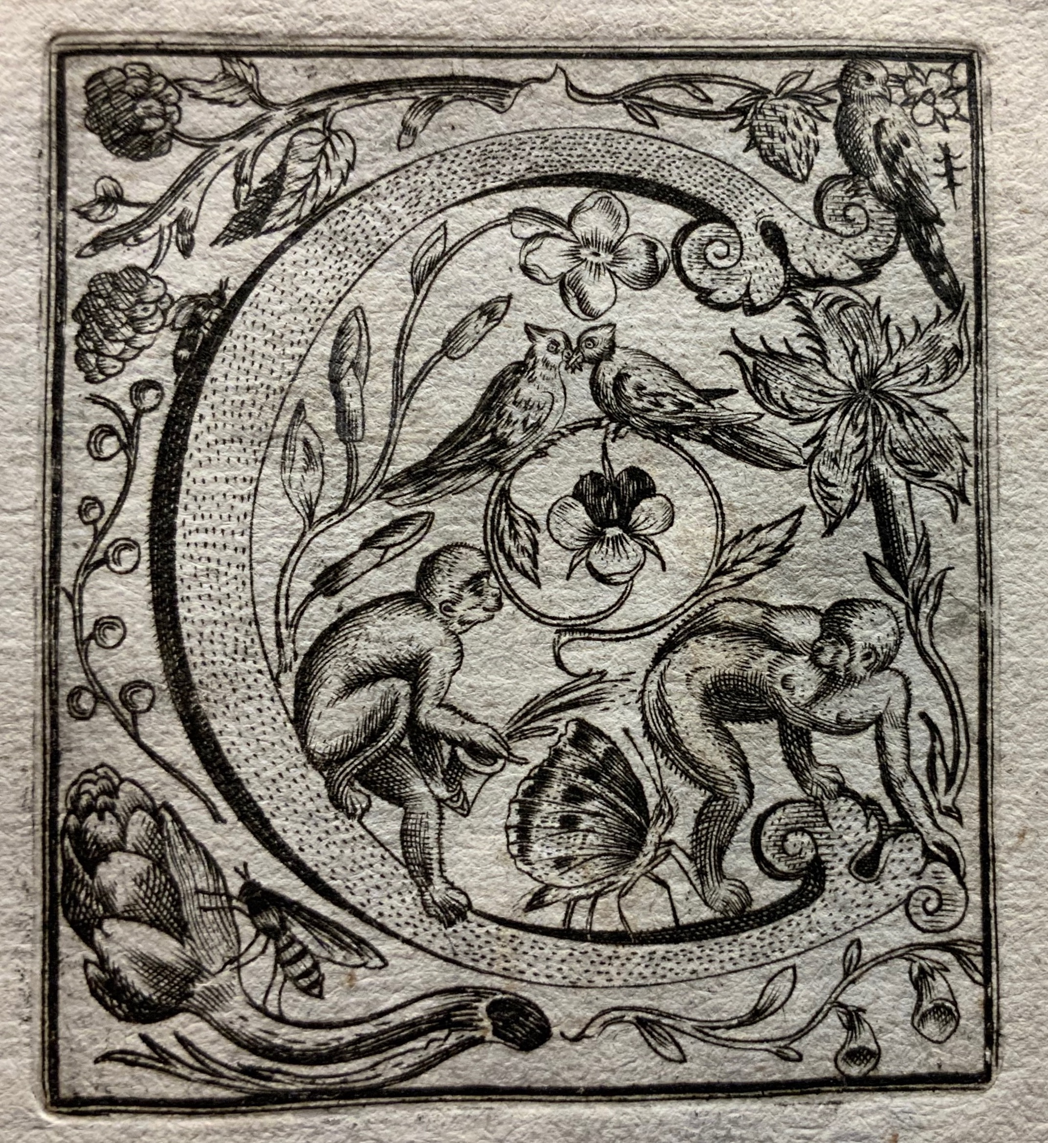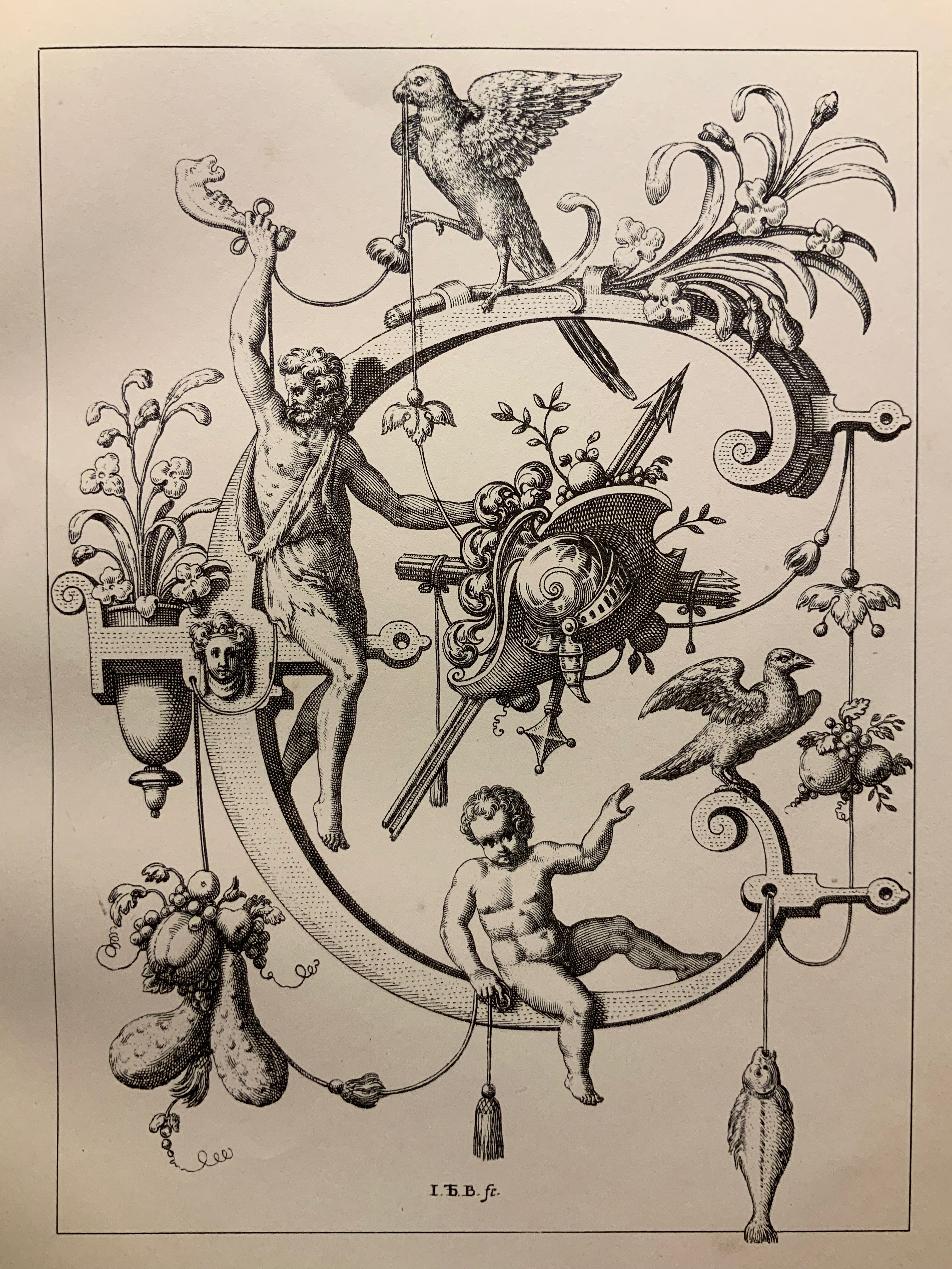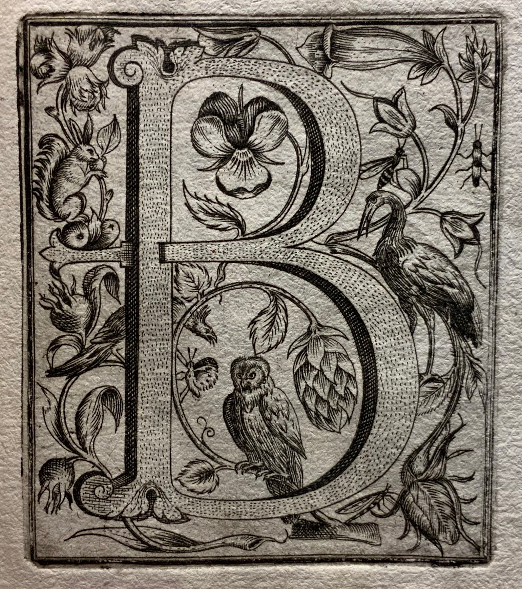 Kiermeier-Debre and Vogel reproduce to scale the letters from the Neiw Kunstliches Alphabet and present thumb-nail versions of the alphabets as well as the decorated letters from Alphabeta et characteres. Their facsimile is not the first for these works. J.N. Stoltzenberger printed Alphabeta et characteres in translation for William Fitzer in 1628, and George Waterston & Sons published Neiw Kunstliches Alphabet as The New Artistic Alphabet in 1880 (albeit without the original’s text and verses). By juxtaposing all these originals, Kiermeier-Debre and Vogel provide a concentration of what makes the De Brys partial forerunners in the history of book art: images embracing letters (and letters embracing images).