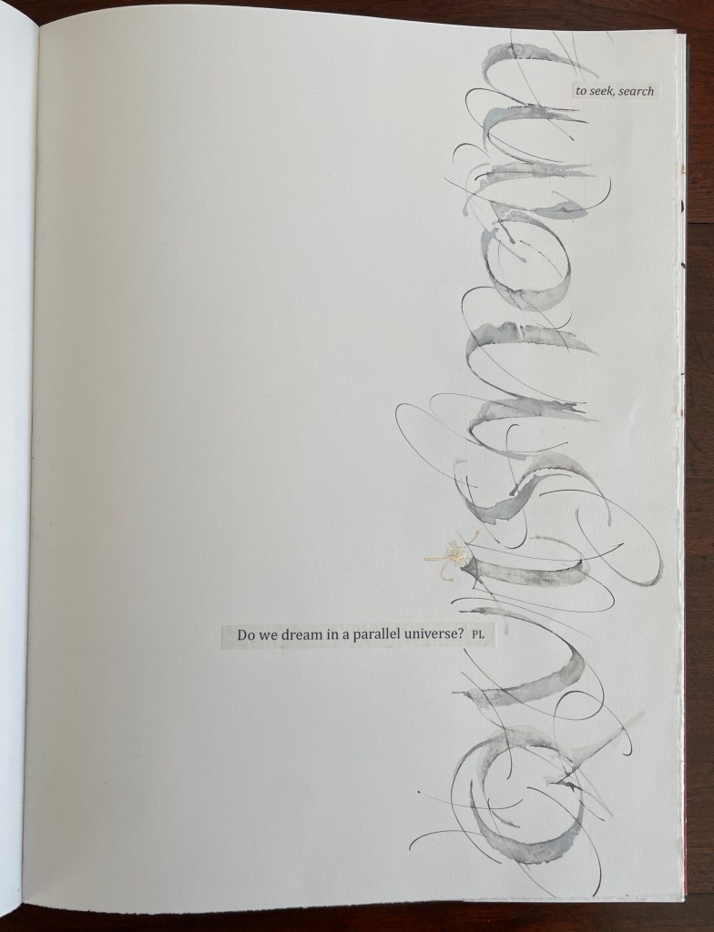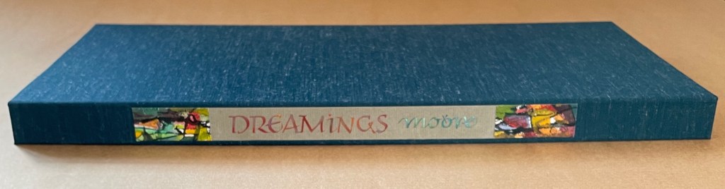 Dreamings (2023) Suzanne Moore Artist’s manuscript. Softcover, handsewn. Cloth-covered box with handwritten and painted title pastedown on the spine. H368 x W178 mm. 17 pages. A unique edition. Acquired from the artist, 15 April 2024. Photos: Books On Books Collection and artist.