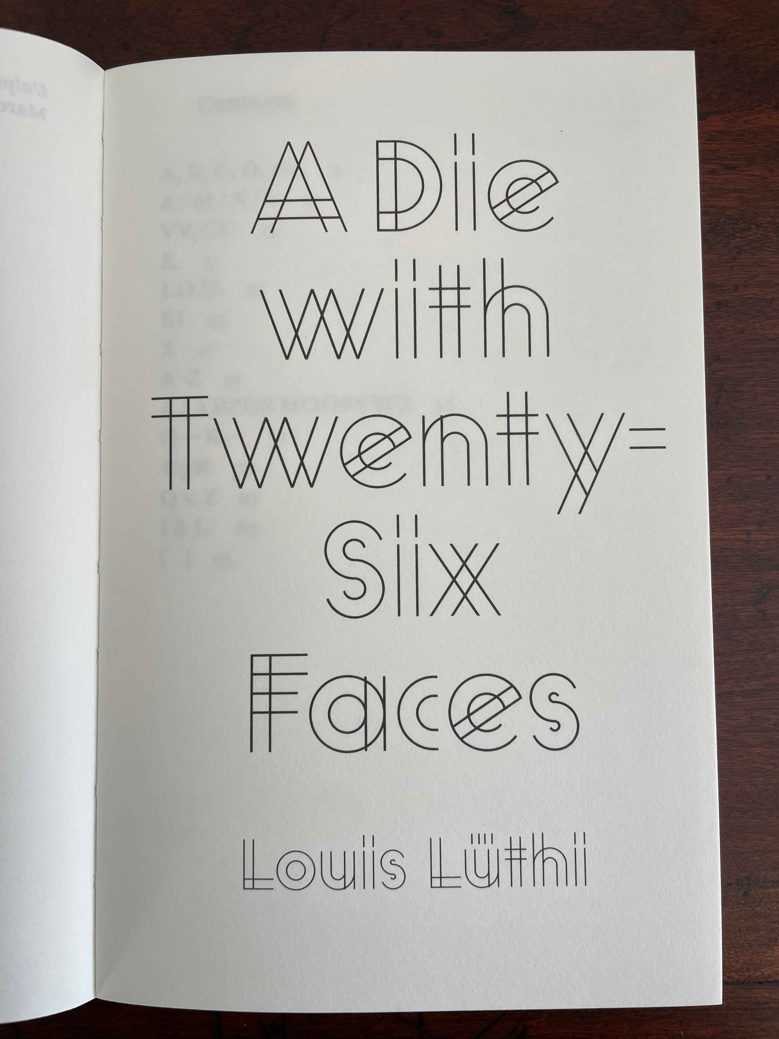 A Die With Twenty-six Faces(2019) Louis Lüthi Paperback. H200 x W130 mm. 104 pages. Acquired from Amazon, 18 September 2022. Photos: Books On Books Collection