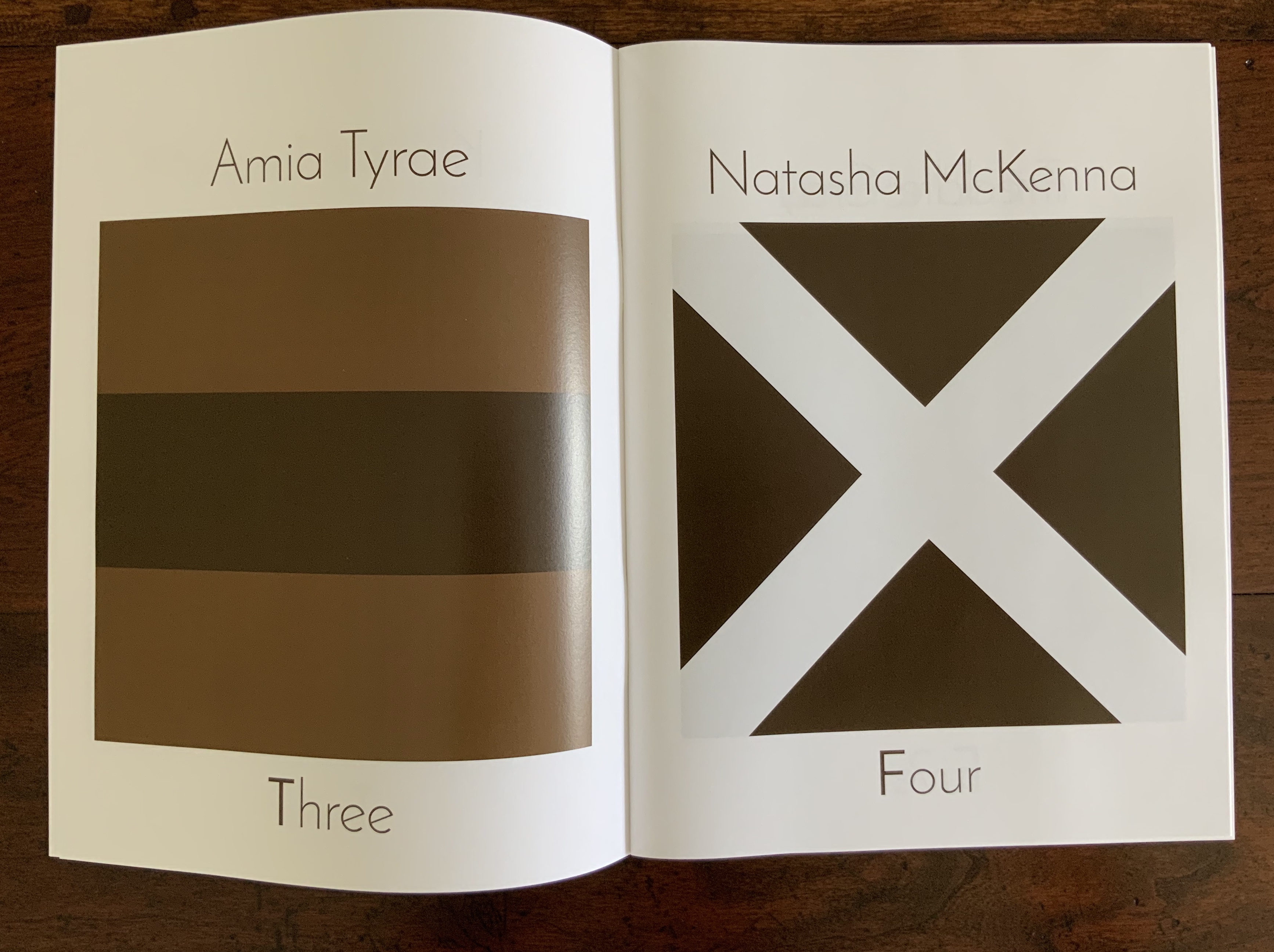 Case bound, cloth-covered book board, modified accordion structure. H7 x W9 x D1 inches, 24 pages. Text laser-printed on 90lb Neenah paper; interior images stencil-printed in acrylic, exterior pattern inkjet-printed on bamboo paper. Edition of 5.