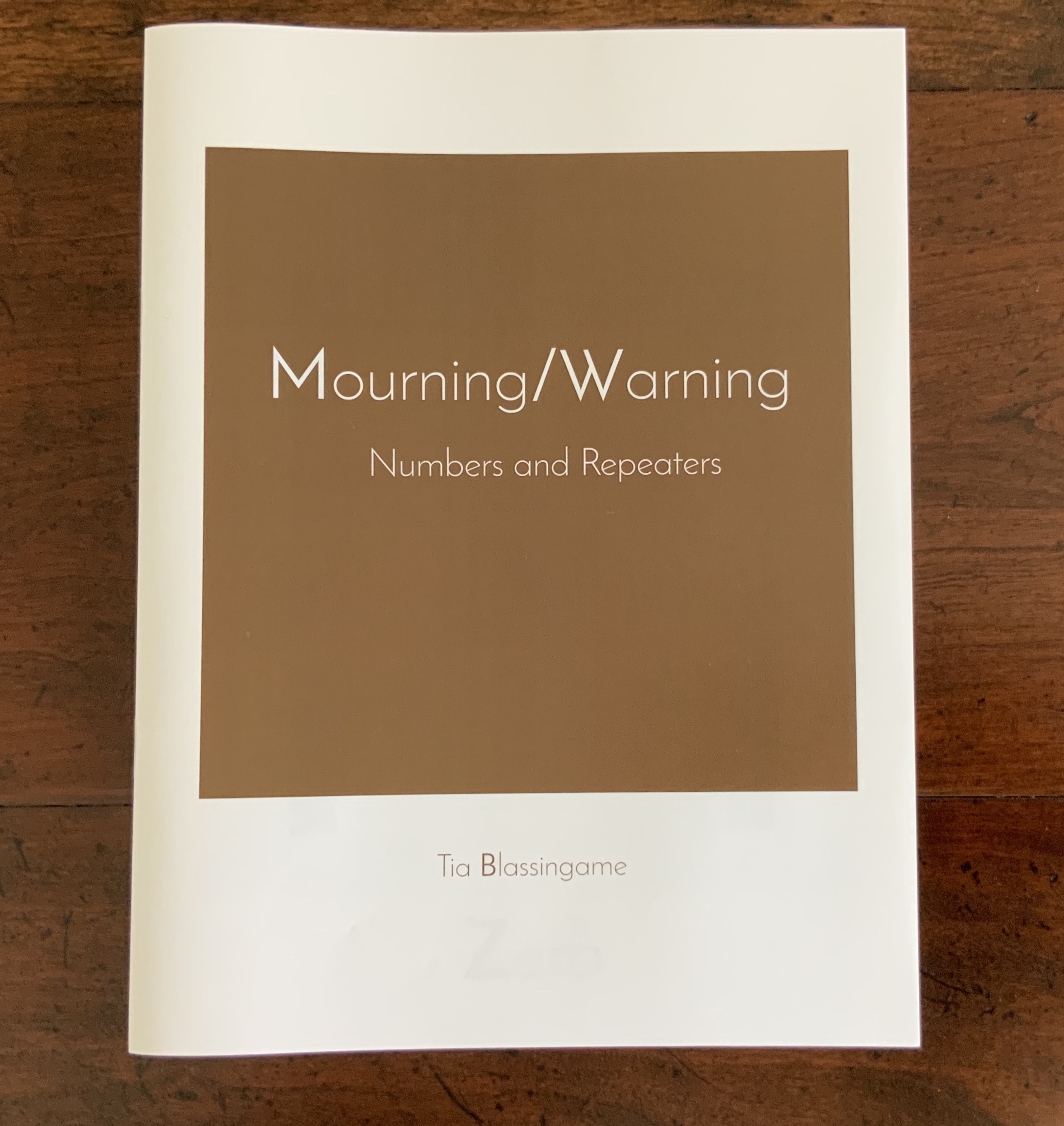 Two double-sided bamboo-paper accordions are joined together, a structure influenced by The Diary of a Sparrow by Kazuko Watanabe. On their exterior is a horizontal gray-white pattern, ink-jet printed, that seems to shift between an image of house siding panels and that of backlit drawn venetian blinds. In the exterior valley folds of the accordions, gatherings of the twelve retellings, laserjet-printed, are sewn to book tape used to join the accordions together. With the twelve narrators, we are on the outside. For this white reader, here begins an uneasiness that will not ease.