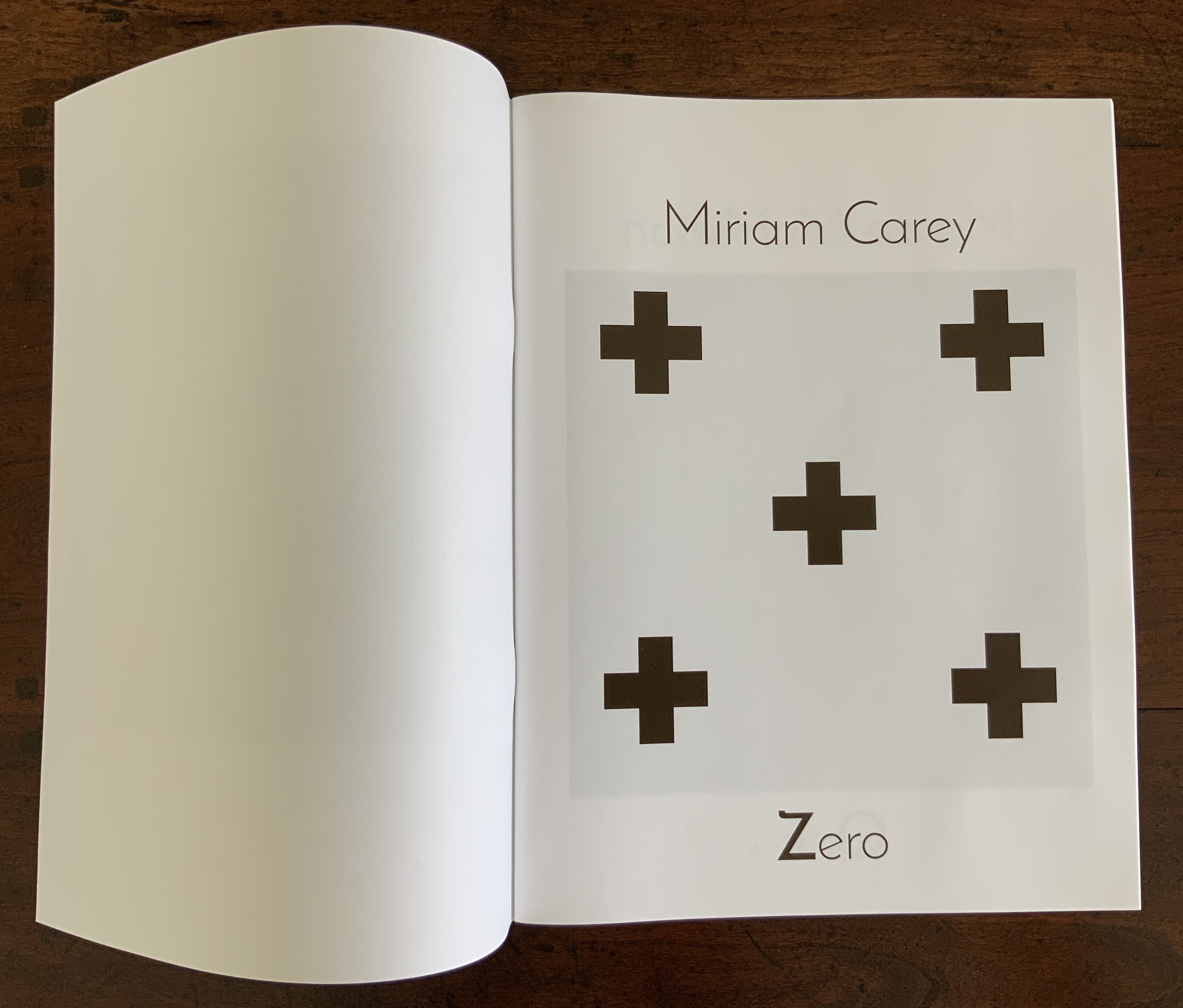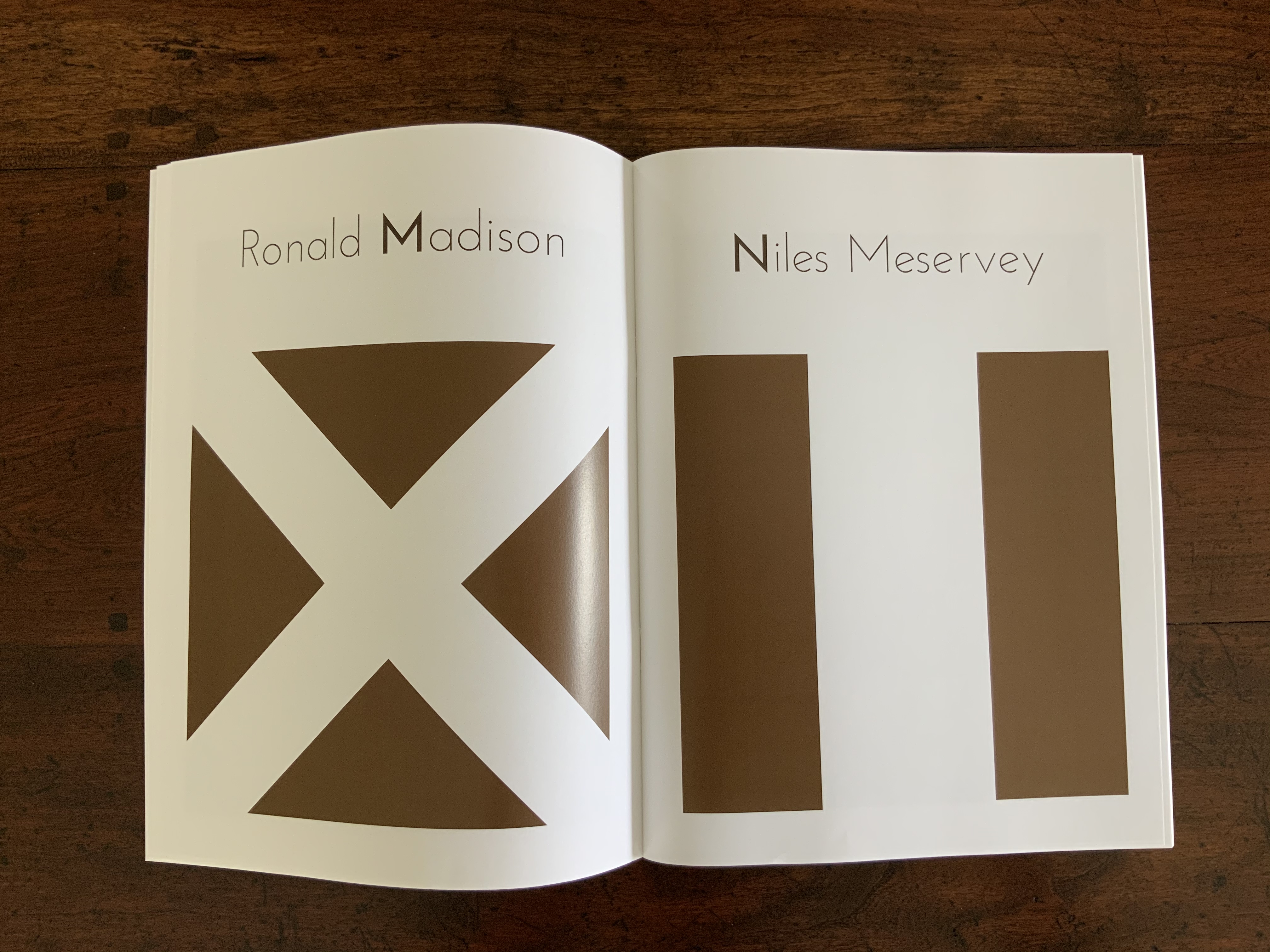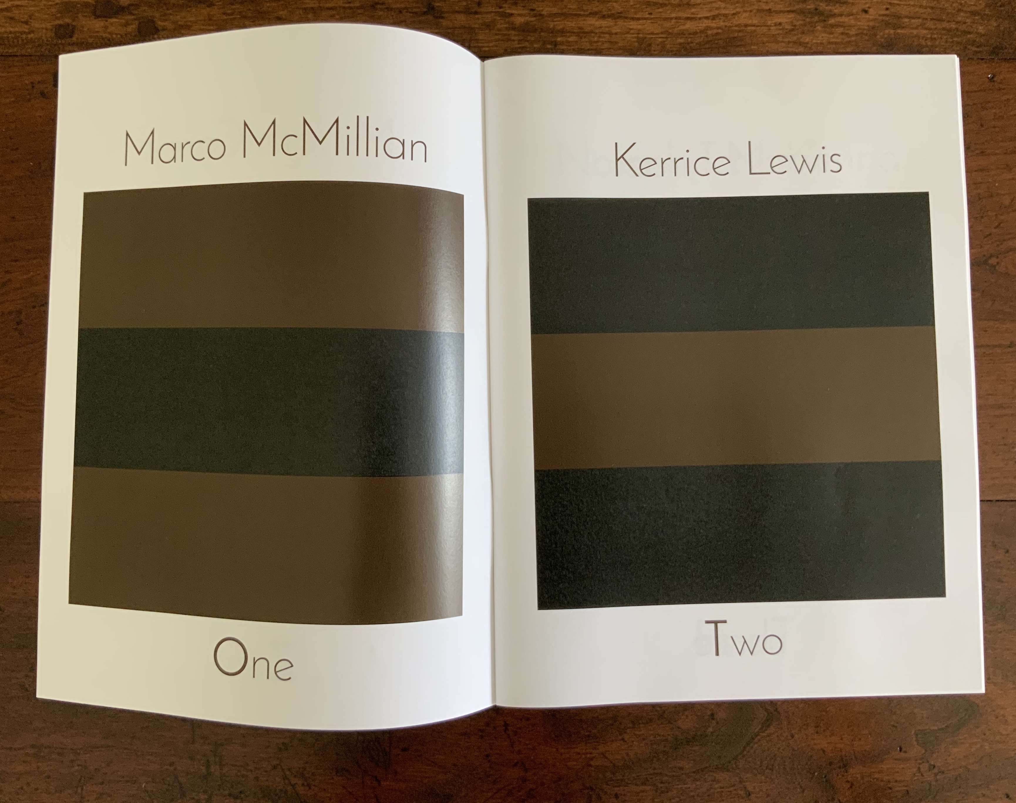 The modified accordion structure lets the reader move through the work codex-fashion or extend it to its 4-foot length as a sculpture to be read/viewed in the round. When read the former way, the hooded images peek out from the edges of the interior; when viewed the latter way, the work takes on a sort of mise-en-scène of the event — or of Easley’s twelve gathered around a jurors’ table even though they are each taking on the role of the deceased Martin as witness to his own death.