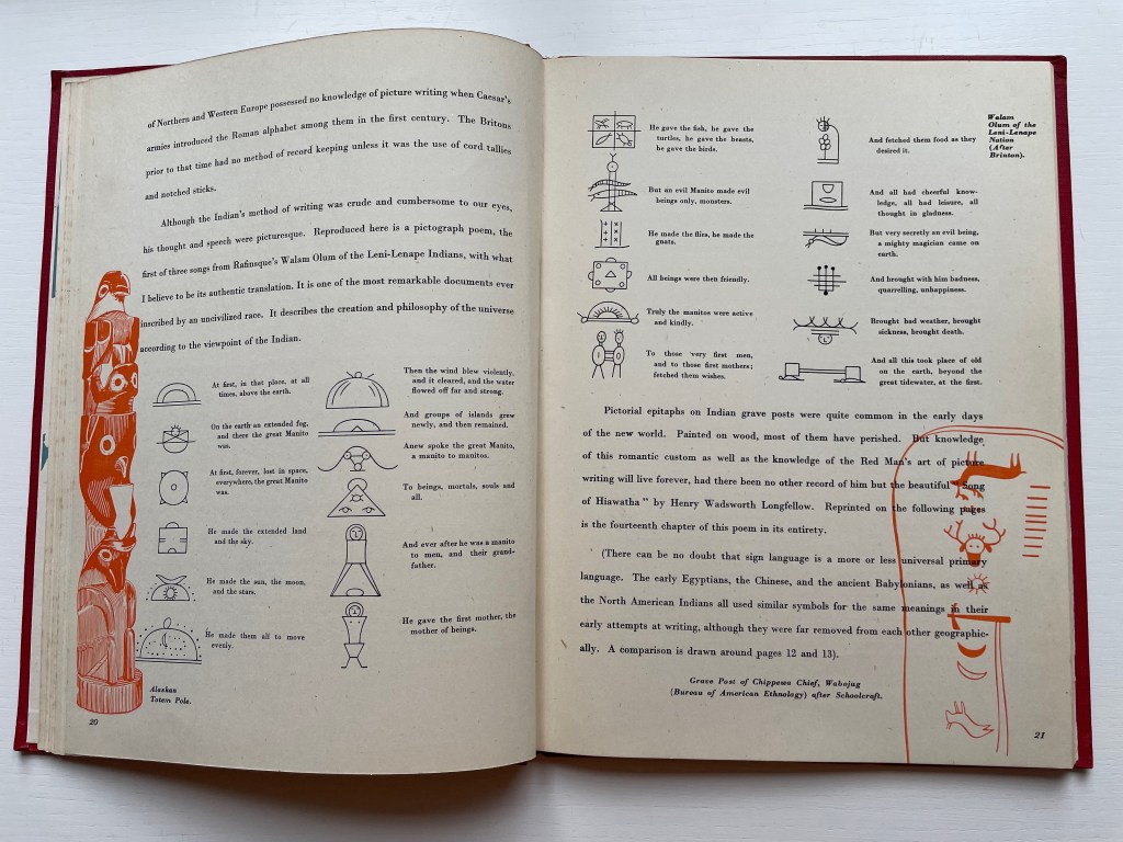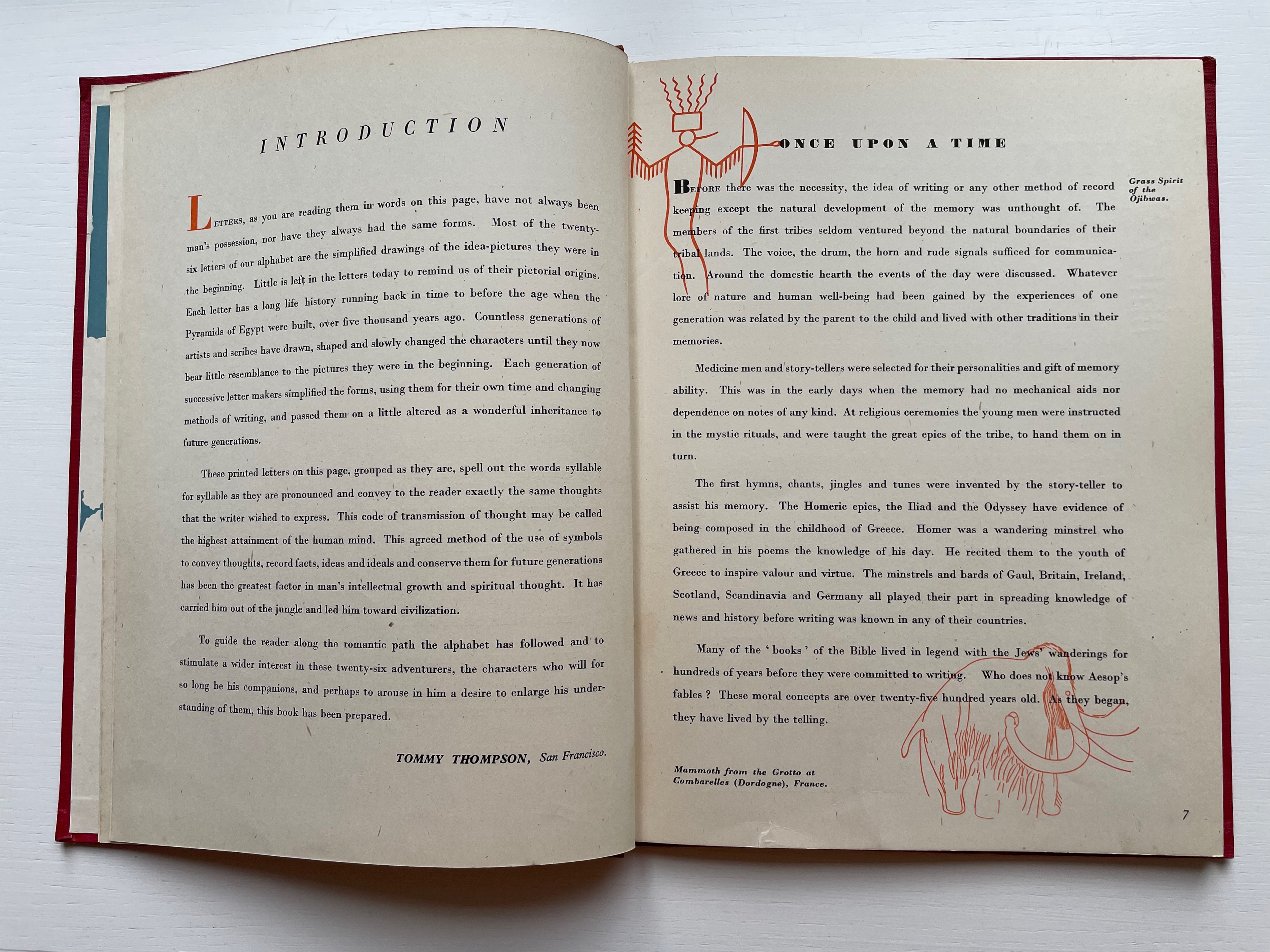 Ege, Otto. 1921/1998. The Story of the Alphabet, Its Evolution and Development… Embellished Typographically with Printer’s Flowers Arranged by Richard J. Hoffman. Van Nuys, CA: Richard J. Hoffman. A miniature. The type ornaments chosen by Hoffman are arranged chronologically by designer (Garamond, Granjon, Rogers) and printed in color.