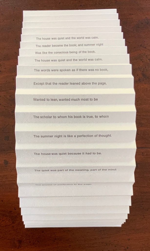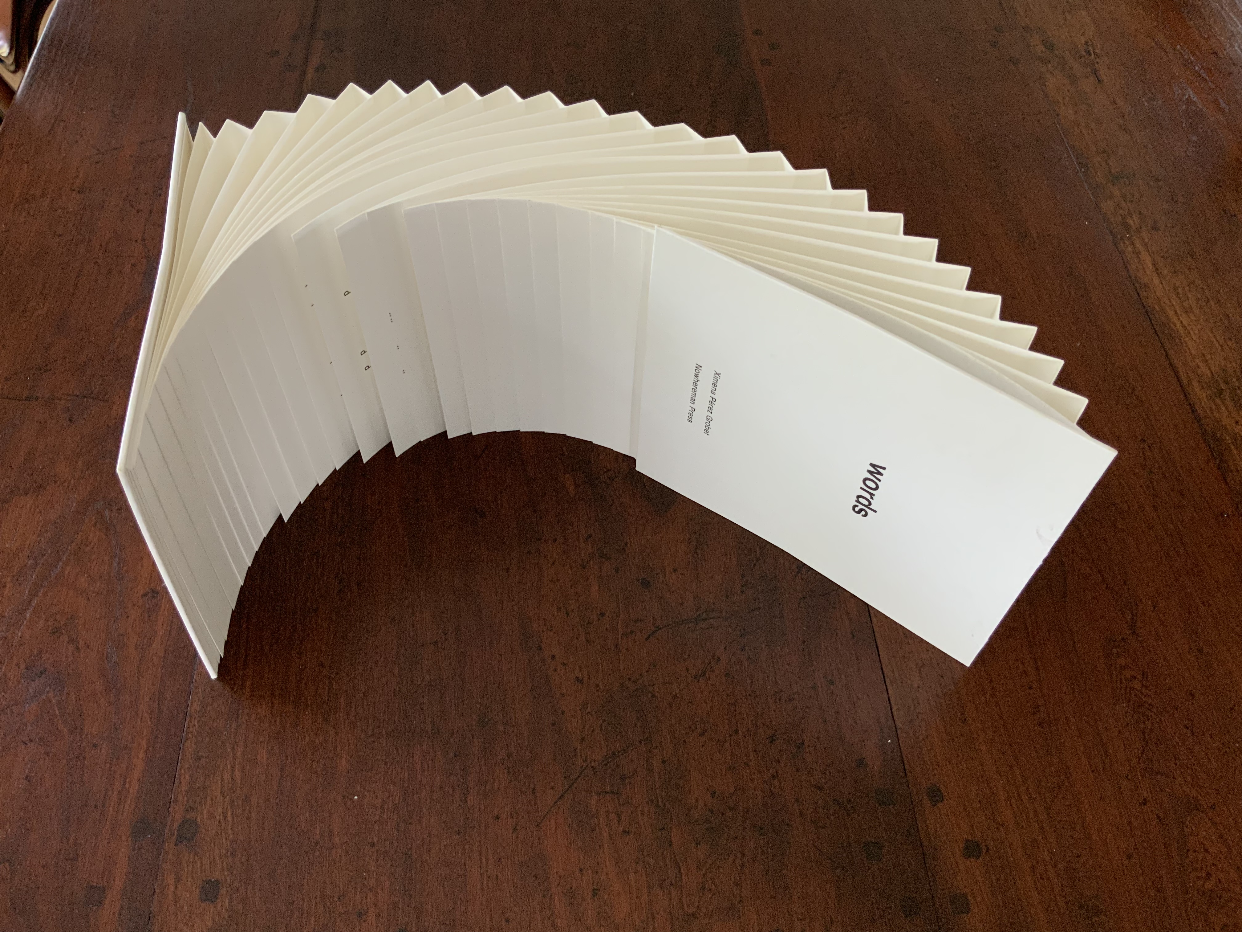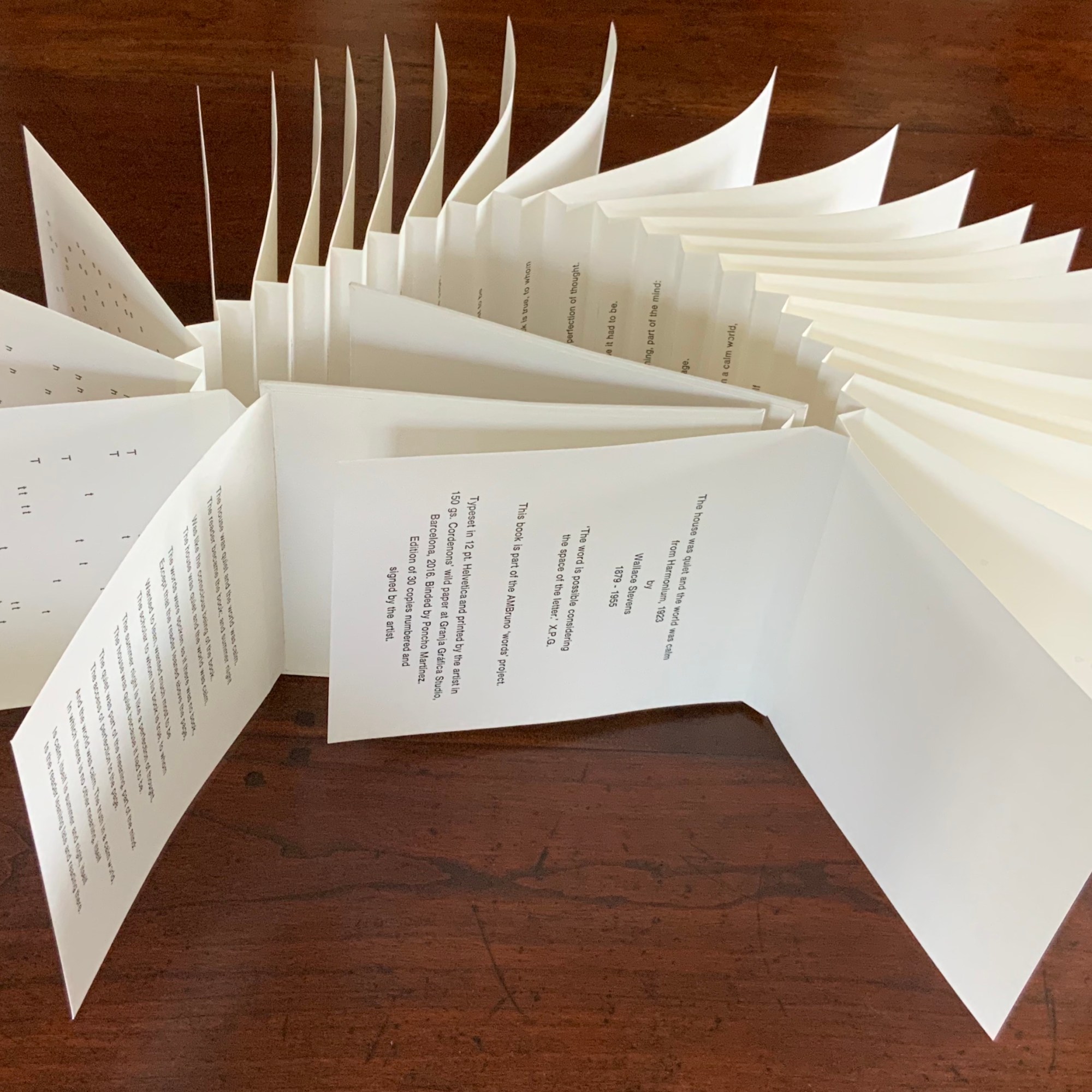 Infant A is part of a collection of essays commissioned by castillo/corrales and published by Paraguay Press under the series title The Social Life of the Book. Lüthi’s contribution fits the Books On Books Collection on several scores. First is the epigram’s invocation of the alphabet, which echoes the collection’s concentration of alphabet-related artists’ books and children’s books. See Alphabets Alive! Second is the epigram’s source: Wallace Stevens, whose poetry has inspired Ximena Pérez Grobet’s Words (2016). Would that other book artists be so inspired. Third is the narrator’s fictional conversation with Ulises Carrión in a celebration of all things A-related, in particular Andy Warhol’s novel a: a novel (1968), which finds analogues in Warren Lehrer’s A Life in Books: The Rise and Fall of Bleu Mobley (2013) and Derek Beaulieu’s a, A Novel by Andy Warhol (2017) (entry in progress). Fifth is how the dialogue reminds me of Suzanne Moore’s A Musings (2015).