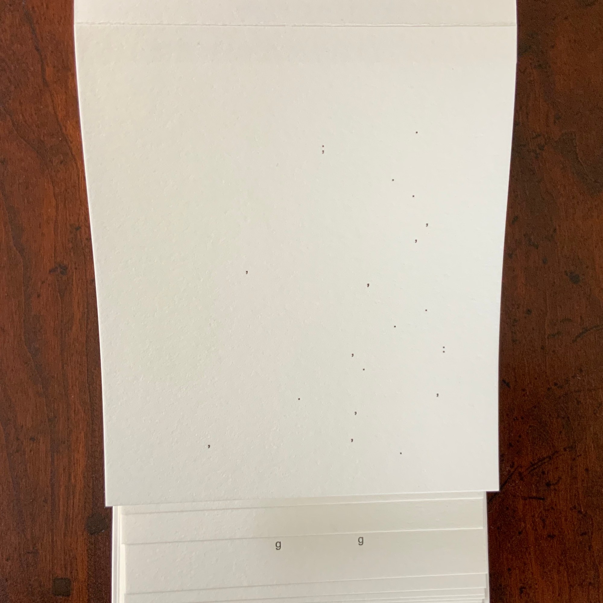 This one paragraph confers on Lüthi’s entire book the very self-reflexivity that it explores across a range of literature and artists’ books. Reflecting the custom to which it refers, On The Self-Reflexive Page II carries Sterne’s marbled pages on its front and back covers. In the text before his marbled leaf, Sterne refers to it as the “(motly emblem of my work!)“. Lüthi has taken that exclamation to heart (and cover) as if it were advice in creating this hybrid, motley work of his own: “part artist’s book and part essay, part literary excavation and part typographical miscellany” as he calls it in his middle-of-the-book Foreword.